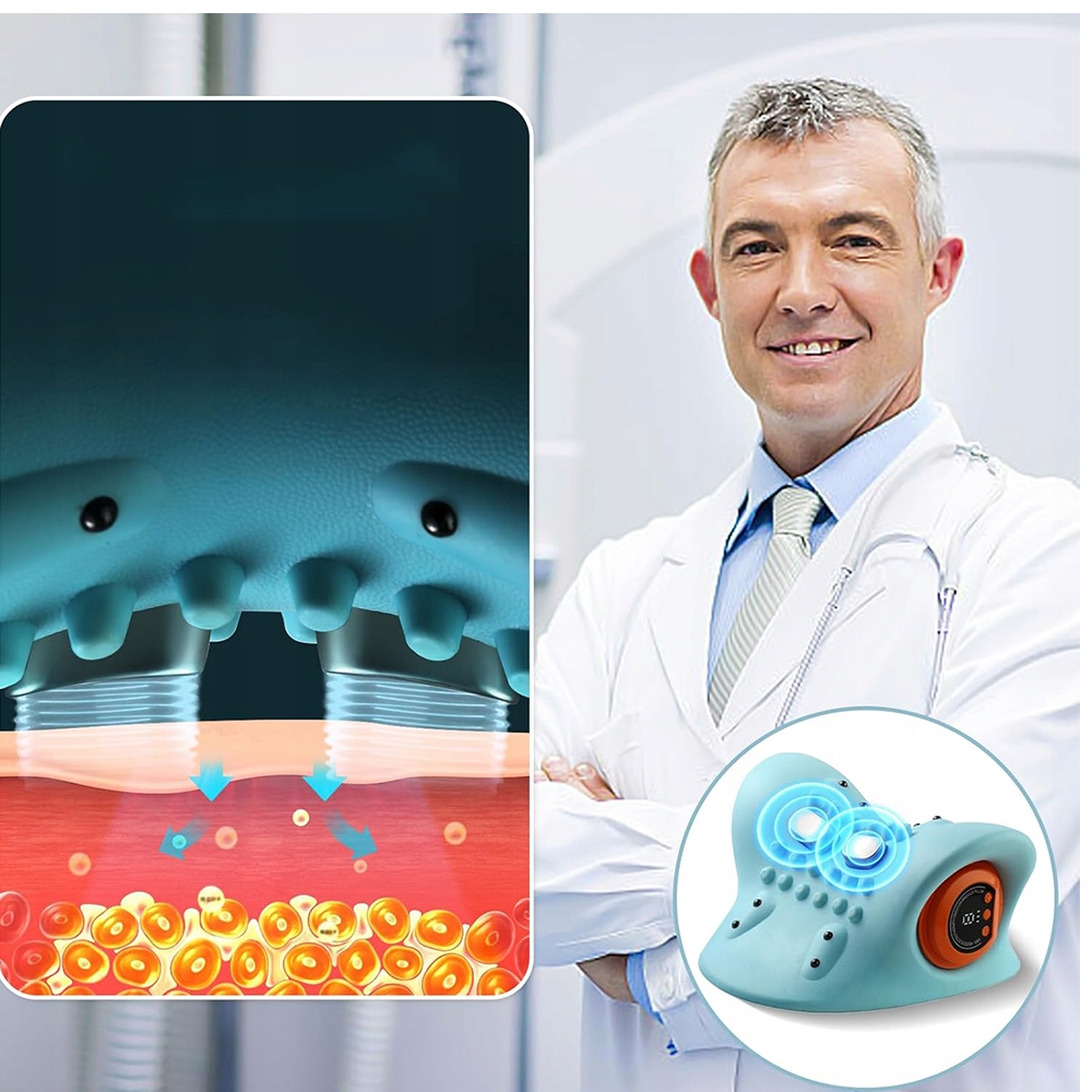 Використовуючи технологію низькочастотного електронного імпульсного масажу EMS, він генерує пульсаційні хвилі, які стимулюють скорочення м’язів шийного відділу хребта та сприяють кровообігу в шиї, забезпечуючи ефект масажу та розслаблення.