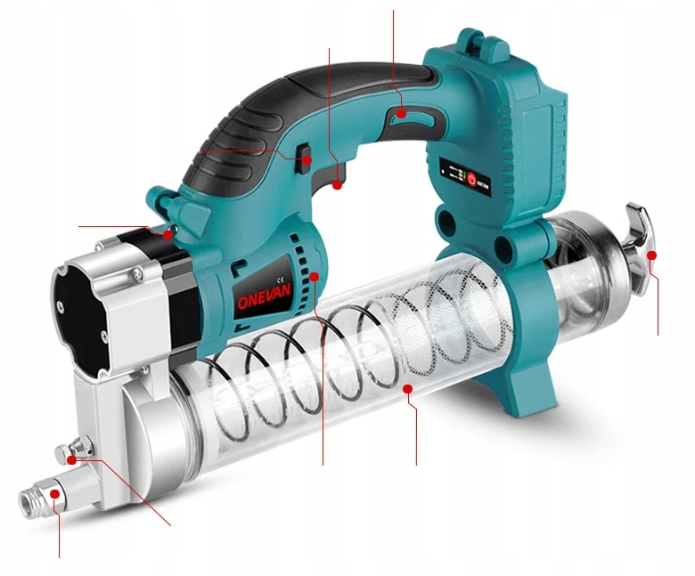 Вбудована лампа Світлодіод значно покращує видимість у темних або погано освітлених місцях, , що полегшує точне змащення та збільшує безпеку використання.