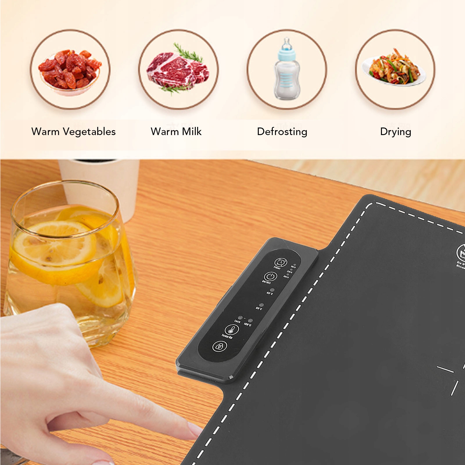 4. 3 Налаштування таймера, 3 рівні температури: Цей килимок для нагріву харчування пропонує 3 налаштування таймера (1 год, 2 год, 4 год) та 3 варіанти температури (60c, 80c, 100c). Гастрономічні потреби. Зручна сторона інтелектуальної панелі управління дозволяє намагатися регулювати температуру, а функція батьківського блокування забезпечує безпеку поблизу дітей.