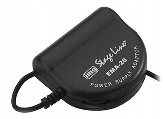 У комплект з мікрофоном Monacor ECM-2500 входить блок живлення EM-20, який завдяки своїм маленьким розмірам не заважає використання мікрофона.