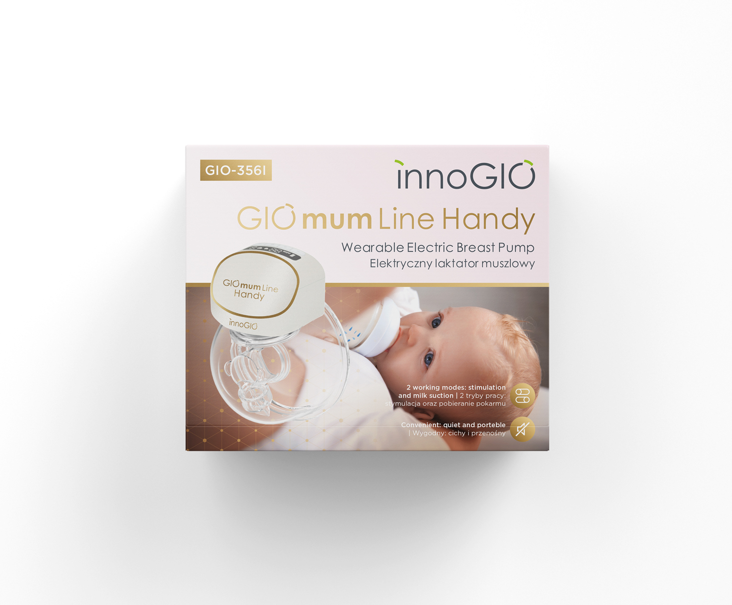 GIOmum Line Handy — сучасний, тихий і компактний молоковідсмоктувач із закритою системою (все в одному пристрої), що дозволяє мамі рухатися вільно під час вираження їжі. Без трубок, додаткових кабелів і пляшок, ви просто кладете молоковідсмоктувач під білизну, і він готовий. Ви зціджуєте молоко і маєте свободу рухів. Завдяки GIOmum Line Handy ви можете швидко підійти та бути поруч із малюком у будь-який час.