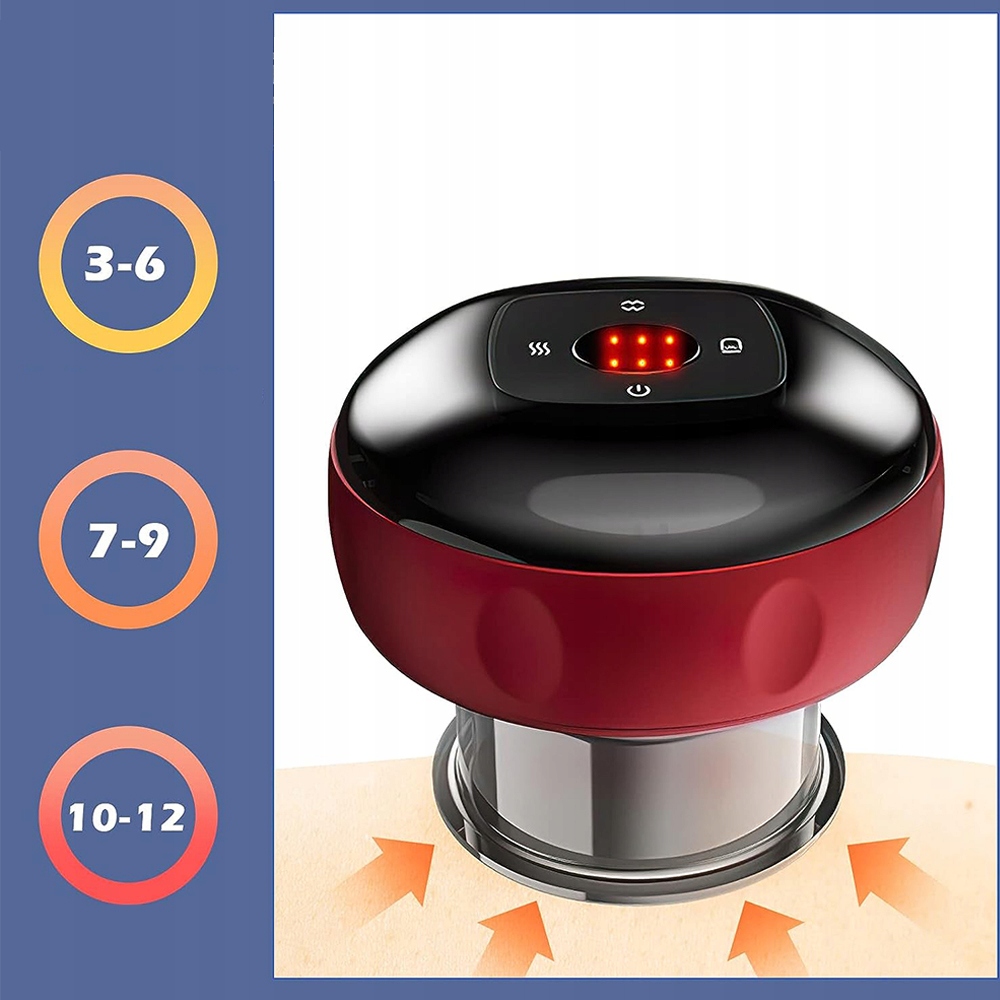 💆 Регульована 12-швидкісна функція - Дванадцять швидкостей регульованої функції масажу можна налаштувати на бажану потужність всмоктування. Дванадцять режимів нагріву, оснащені режимами нагріву рук, спини, шиї, литок, сідниць і центру. Червоне світло нагрівається до 50°C, не пошкоджуючи шкіру.