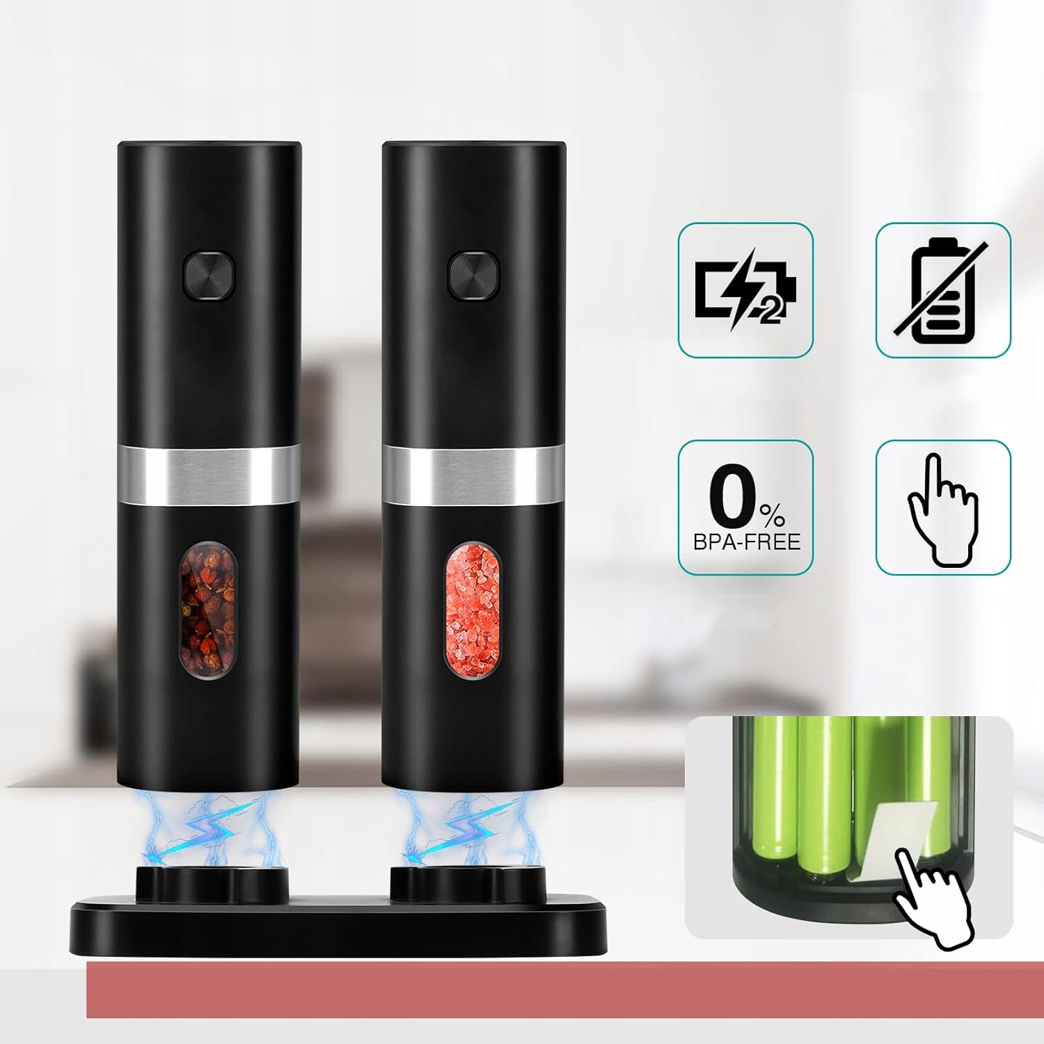⬅ 【Peps Mill з можливістю представлення з корпусом】: без додаткових витрат батарей AAA Набір солей та перцевих млинів оснащений декількома батареями, що заряджаються, що підтримують тисячі людей. Використовуючи додану станцію зарядки, вона може бути заряджена не лише кабелем USB-C, але й як станція зберігання, яка організовує всі два млини, щоб замовити та замовити ваш кухонний стільницю.