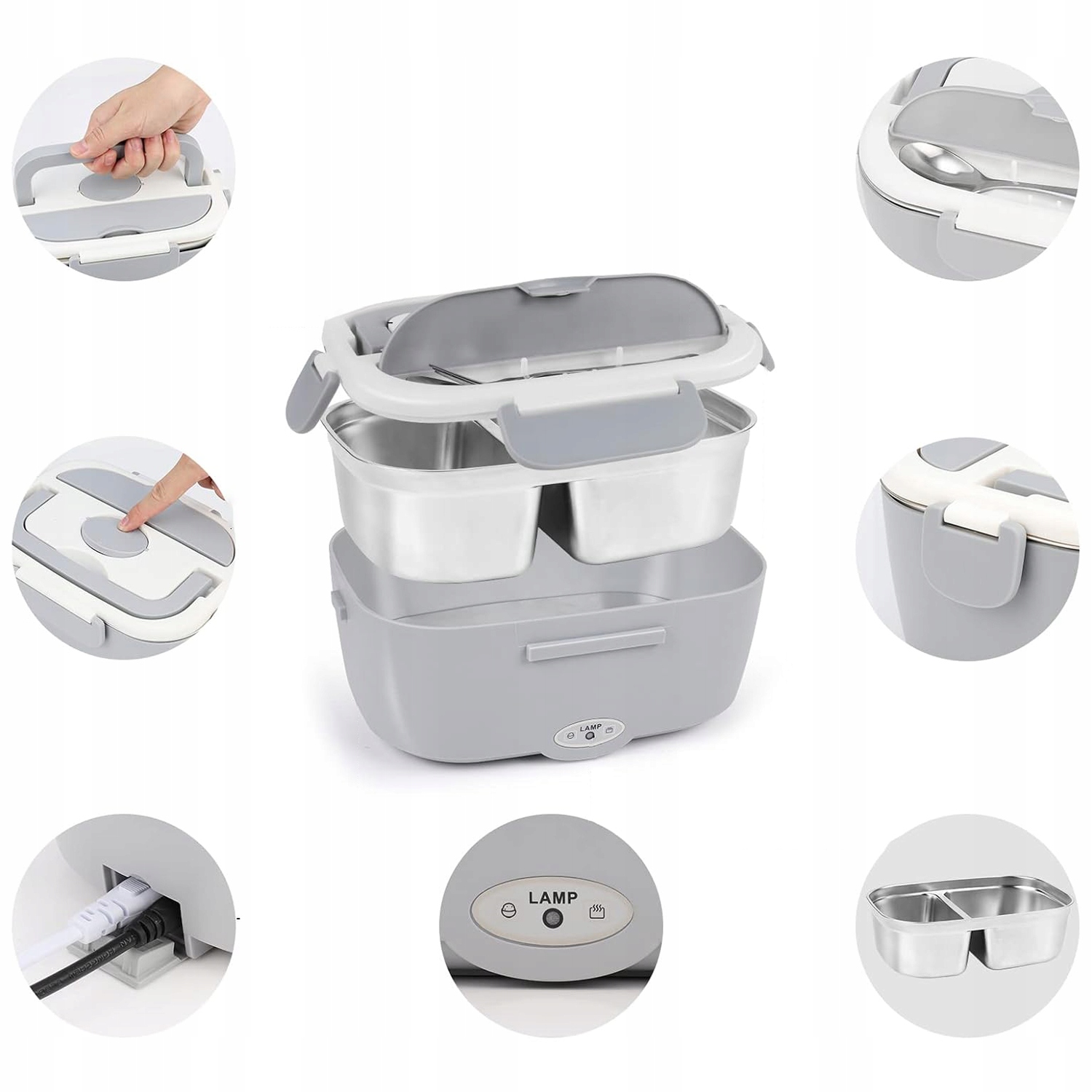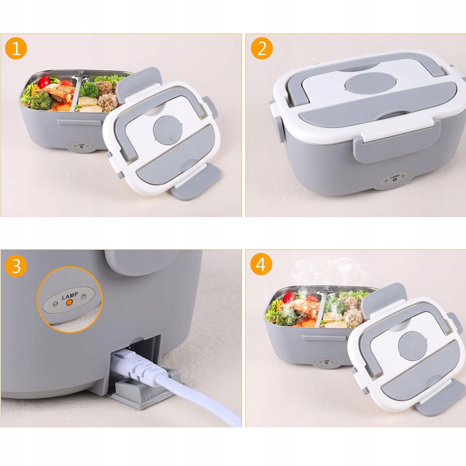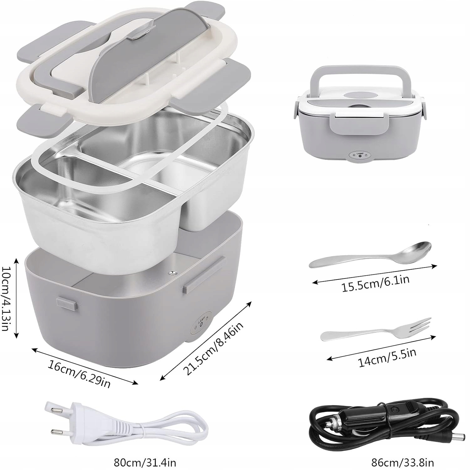 - ✔️Ланчбокс з електричним підігрівом включає дві різні вилки: робота/дім (110 В) і автомобіль/вантажівка (12 В/24 В).