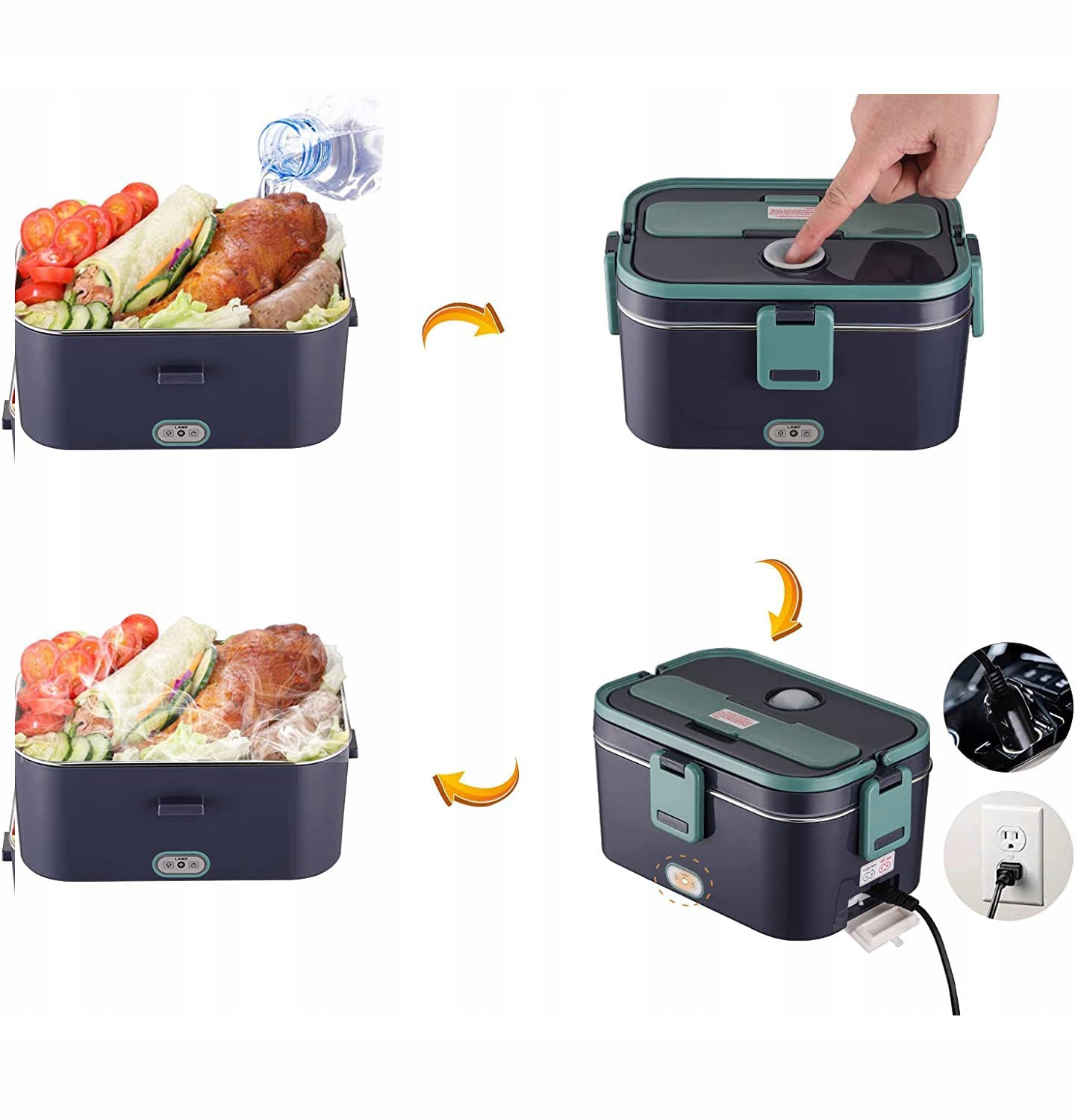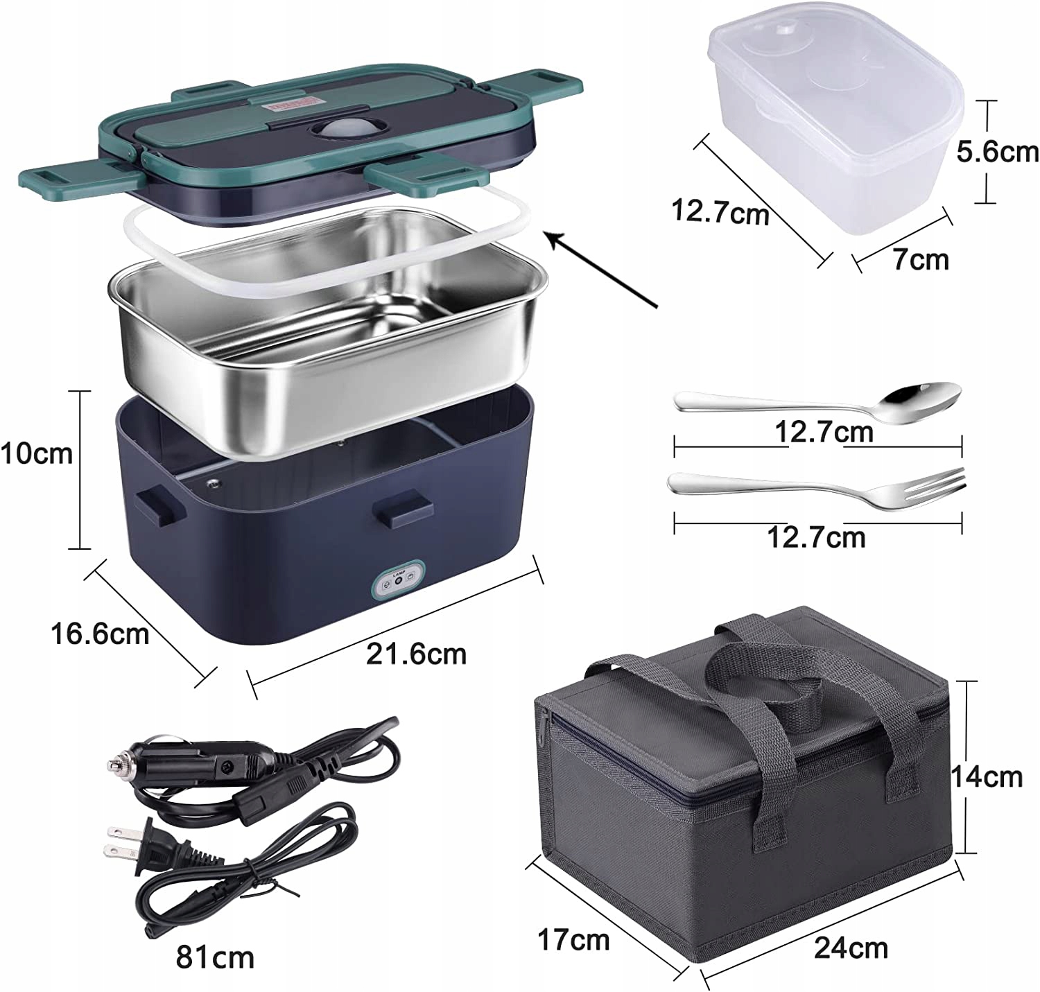 - ✔️Універсальне використання: подвійна напруга для дому та автомобіля 220 В/12 В/24 В 60 Вт За допомогою цього ланчбокса ви можете розігрівати їжу будь-де та будь-коли без використання мікрохвильової печі. (Перед нагріванням переконайтеся, що нагрівальна пластина та дроти сухі.)
