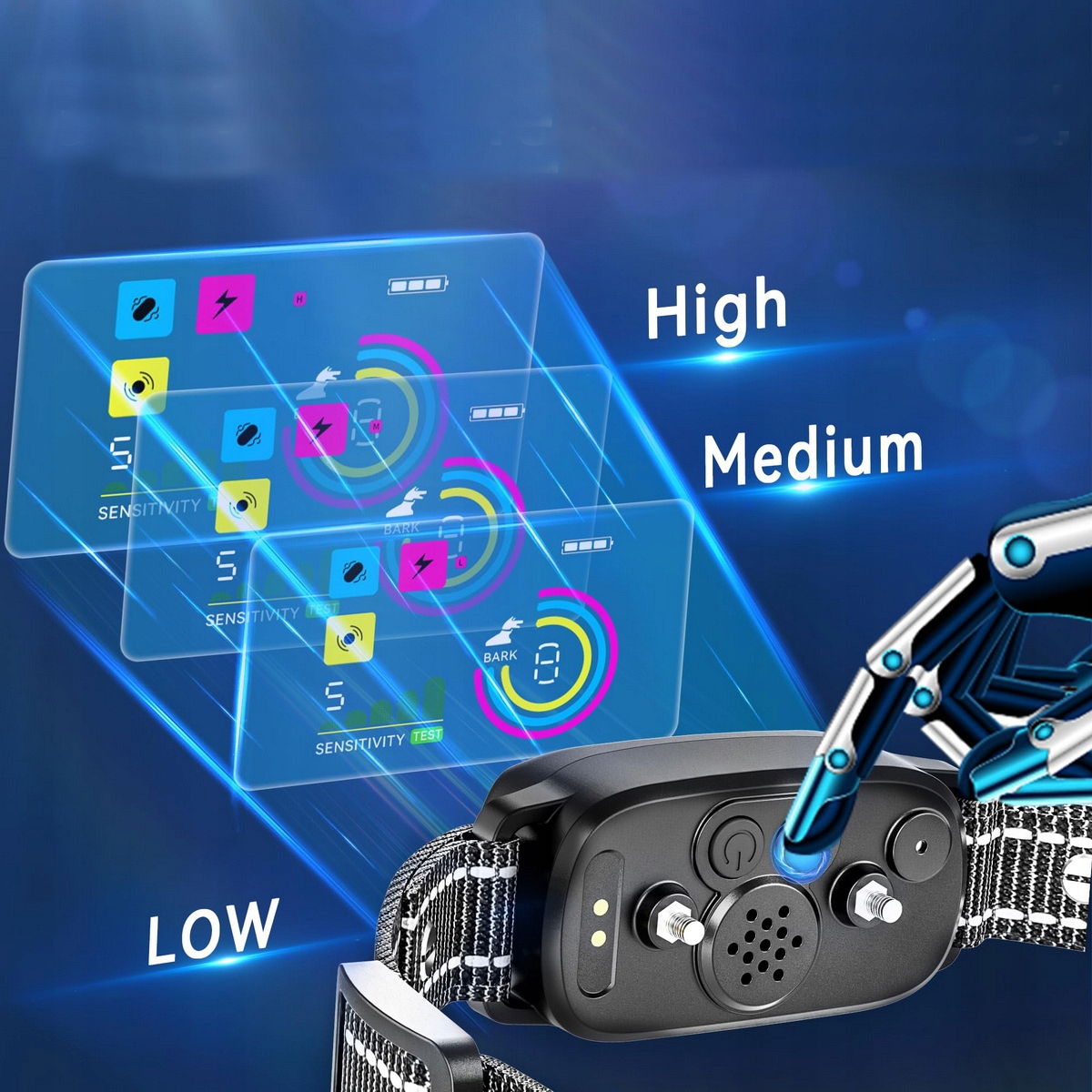 Наш нашийник оснащений інтелектуальною системою, яка дозволяє вибрати рівень чутливості залежно від умов навколишнього середовища, в яких працює ваша собака. Незалежно від того, чи грає музика вдома, увімкнено телевізор чи граються ваші діти, нашийник зможе контролювати поведінку вашого друга.