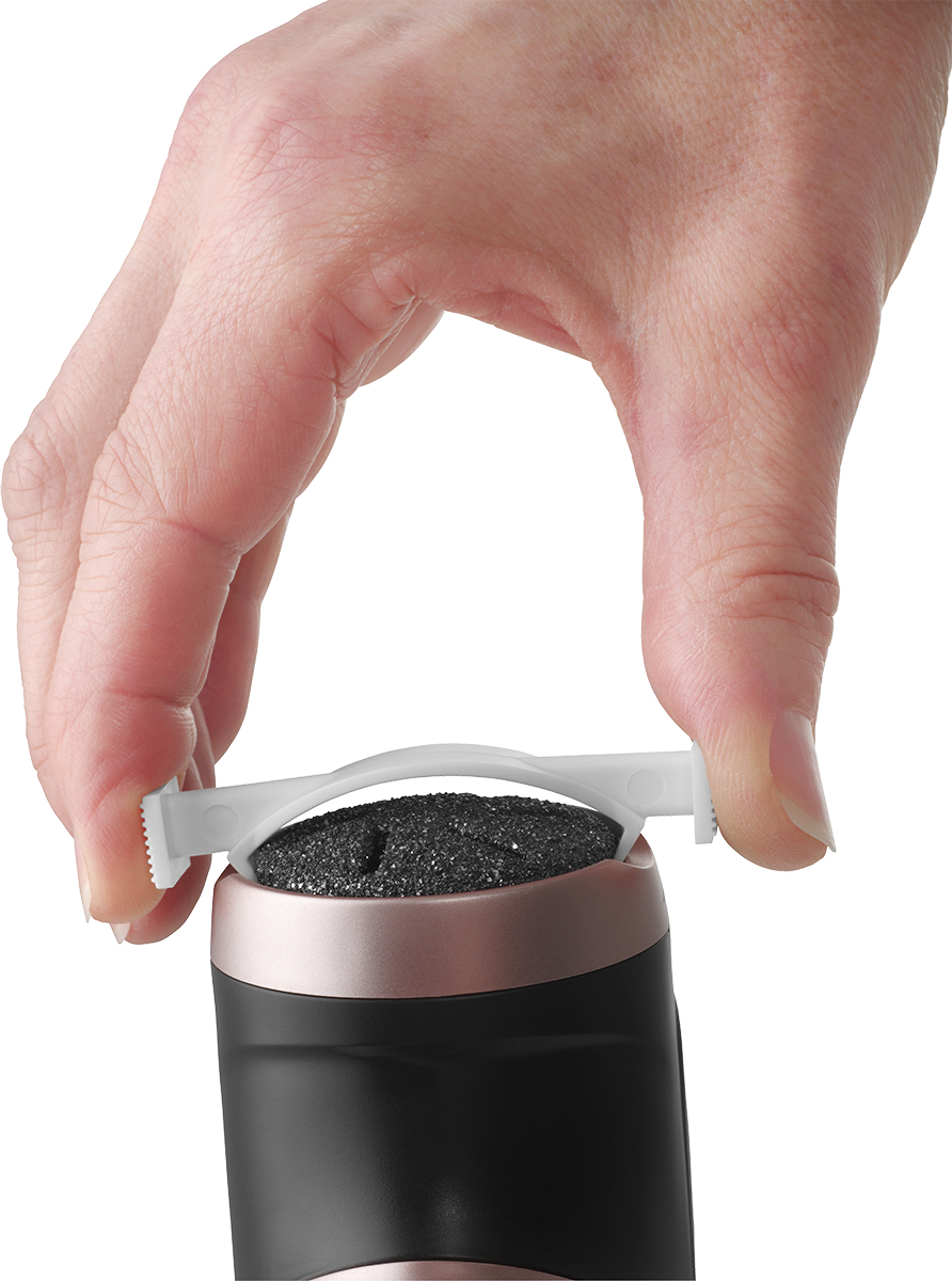 Щоб отримати найкращі результати, перед використанням файлу слід занурити ноги в теплу воду, щоб пом’якшити шкіру. Потім висушіть їх рушником. Виберіть потрібну швидкість і обережно перемістіть обертову головку по столі. При регулярному використанні підбори та ноги будуть гладкими і м'якими на дотик.