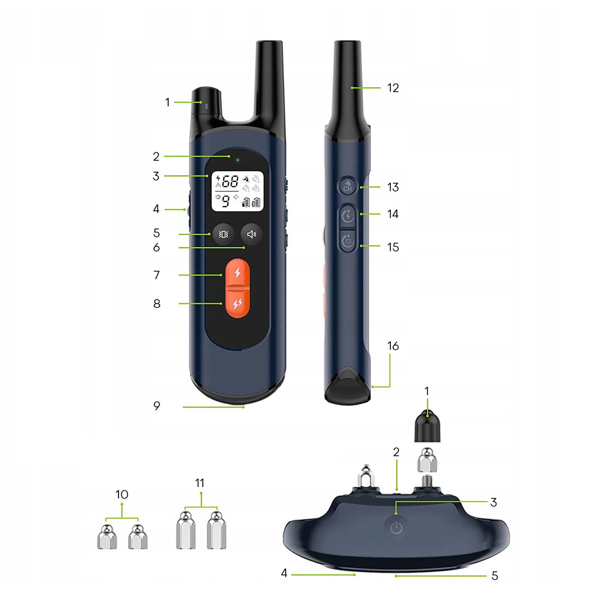 ✅ Завдяки контрольній відстані до 500 метрів ви можете вільно навчити свою собаку в парках, у дворі та в різних кімнатах, що починають електричний імпульс. Показавши рівень акумулятора, рівень вібрації, попередження та багато інших.
