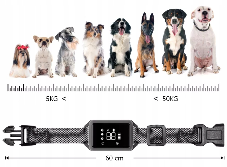 Наш нашийник підходить для собак усіх порід вагою 5-60 кг.