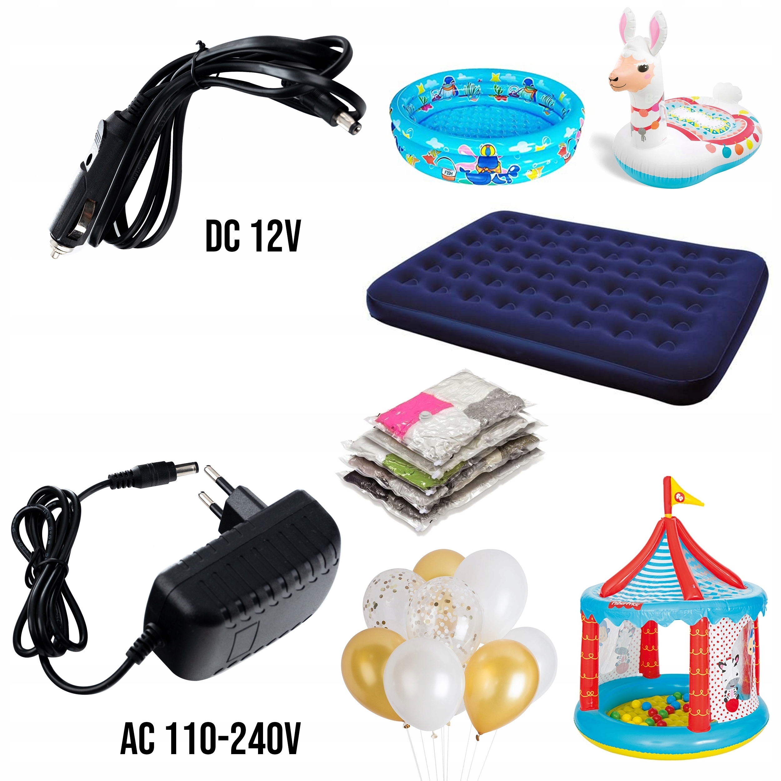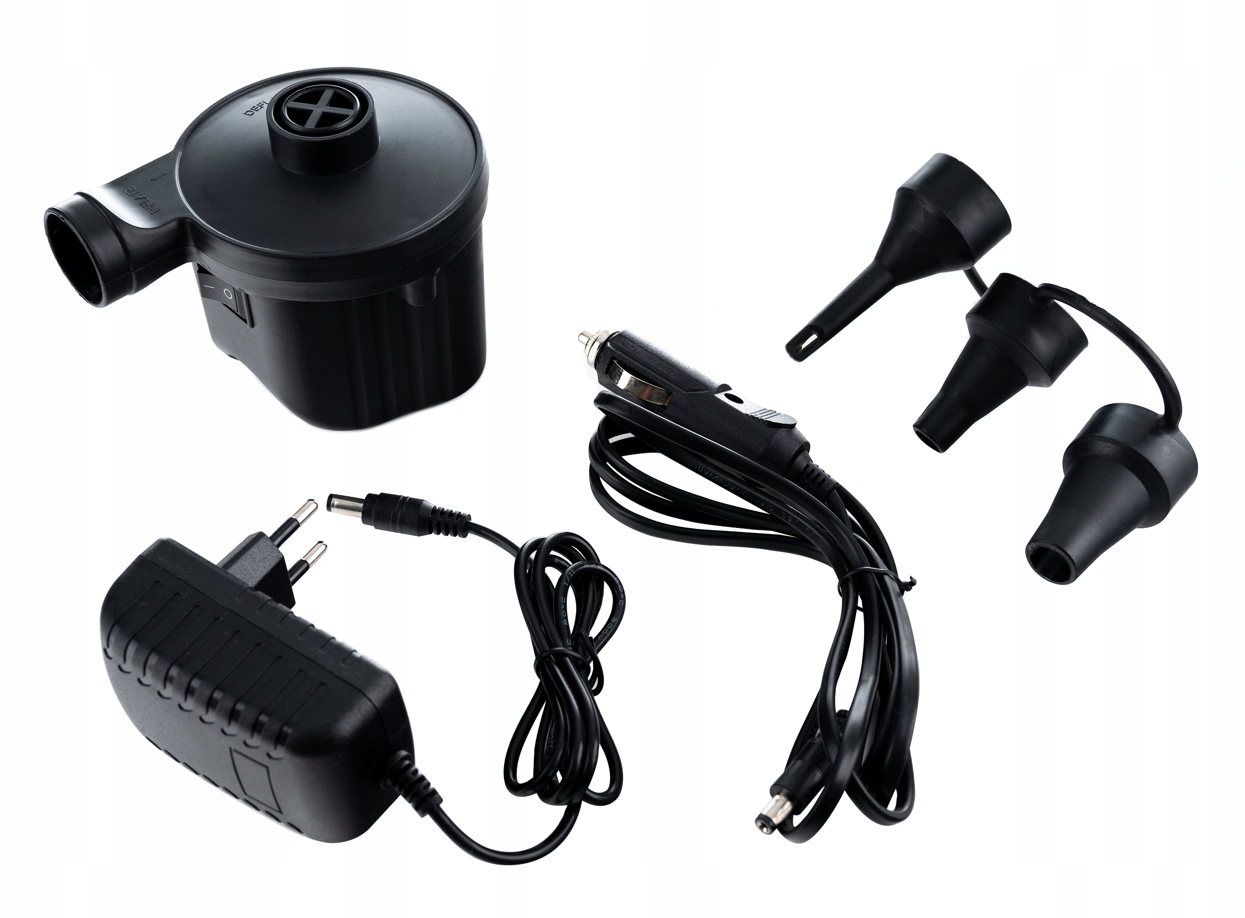 Електричний насос невеликий і зручний, призначений для надування та видалення повітря з різних предметів, наприклад, м'ячів, матраців, надувних подушок, надувних човнів тощо.