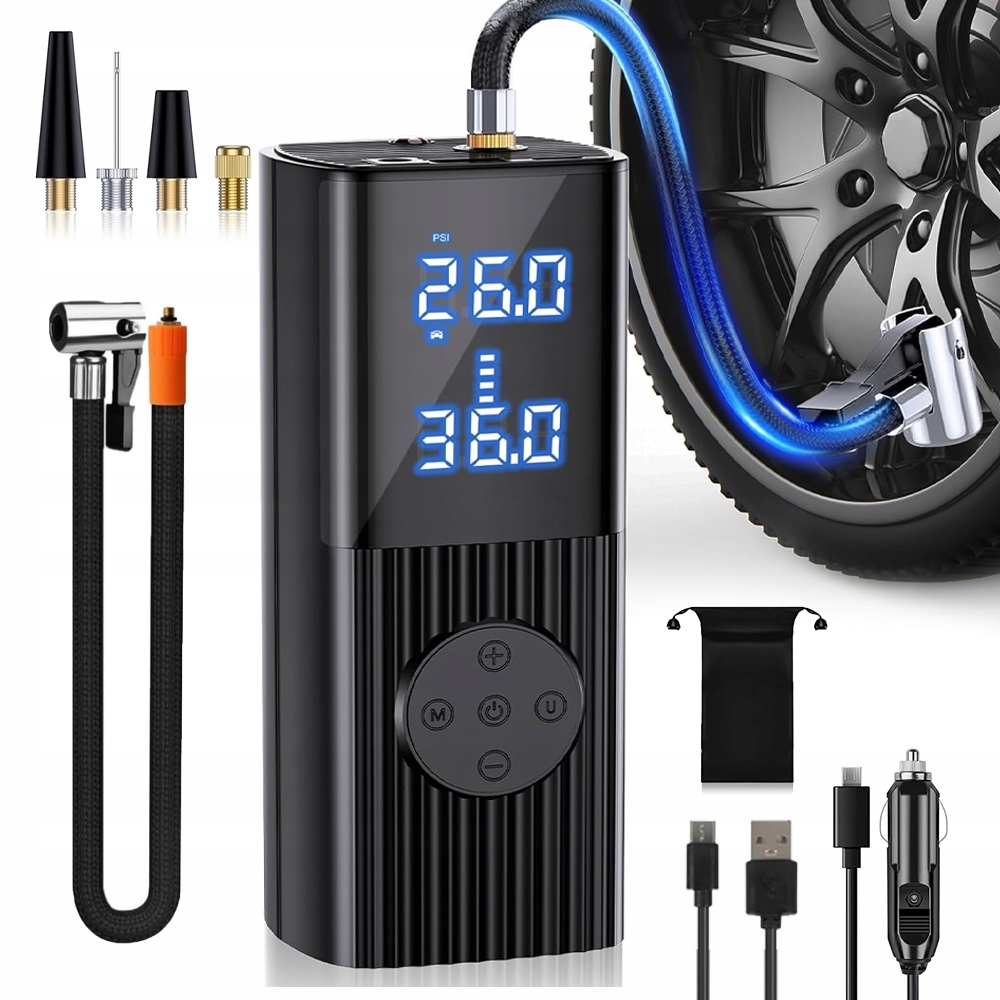 - Насос електричної шини має великий РК -екран з цифровим дисплеєм, який є чіткішим і яскравішим. Він може не тільки надіти автомобіль, а також зарядити телефон і діяти як ліхтарик. Велосипеди, плавальні колеса, байдарки, баскетбол, футбол тощо. Продукти є як функціональними, так і красивими. Вагона станції тощо.