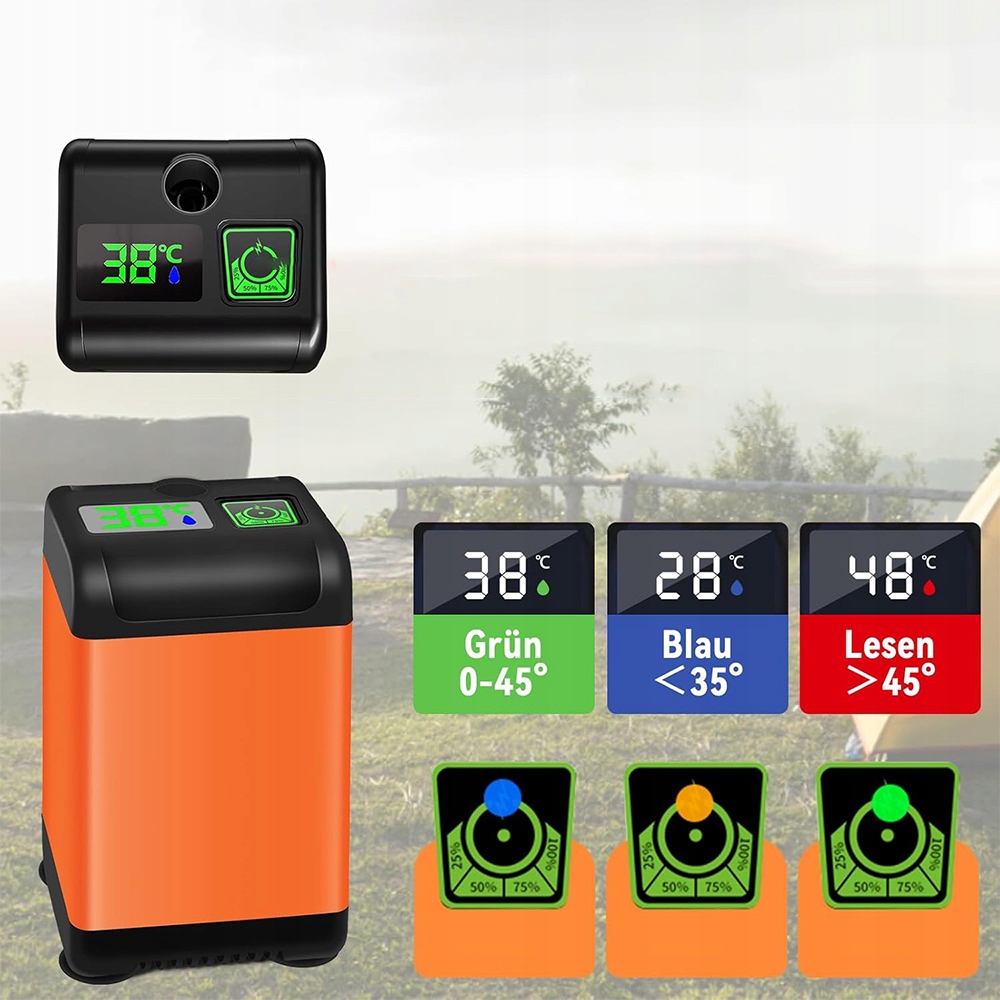 - Легкий моніторинг температури води у відрі. Світлодіодний індикатор стає зеленим, коли температура знаходиться в ідеальному діапазоні 35–45 ° С