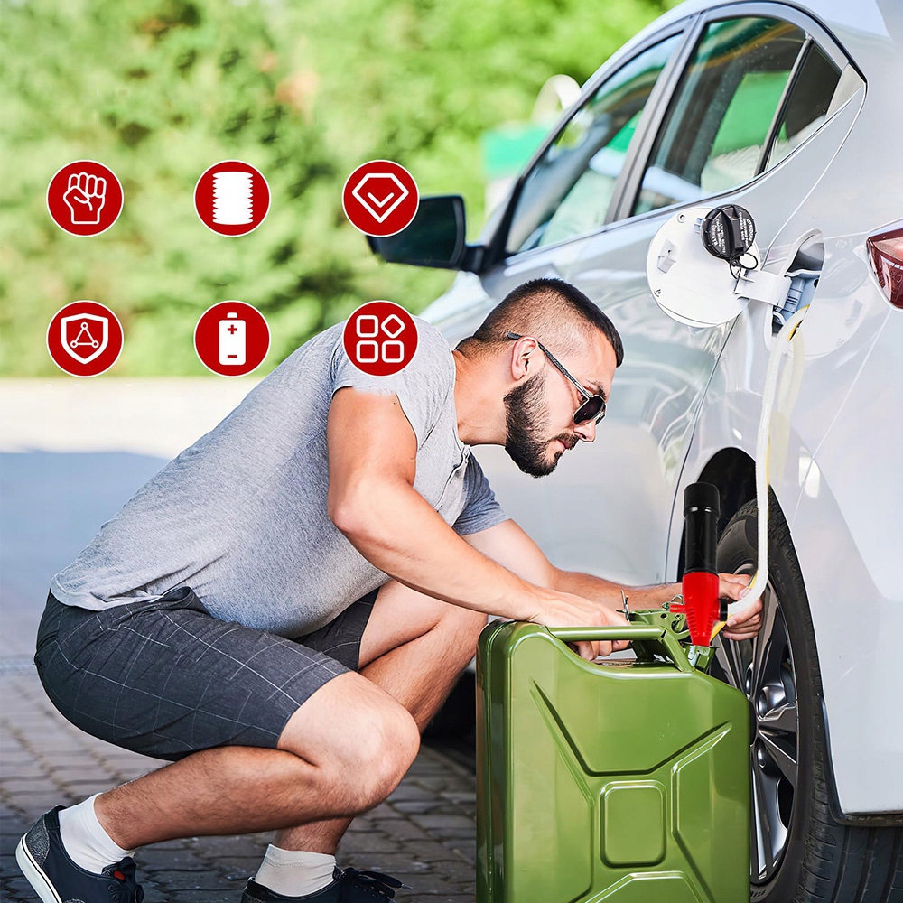 - Підходить для більшості паливних баків (зверніть увагу, що діаметр контейнера, з якого забирається рідина, має бути більшим за 33 мм), підходить для бензинових баків об’ємом від 3 до 5 галонів, бочок для масла, каністр тощо.
