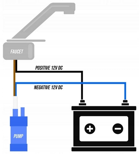 - Електричний насос/Впровадження води 11 l/хв - високоякісний підводний насос, виготовлений у Німеччині. Використовується для раковин та душових кабін у кемпінгових причепах, кемперах, яхтах та човнах