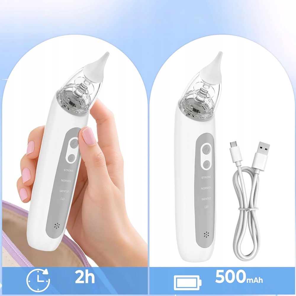 Вас турбує закладений ніс вашої дитини? Наш електричний назальний аспіратор — це м’яке та гігієнічне рішення, яке допоможе очистити ніс вашої дитини від залишків виділень, полегшуючи дихання, їжу та спокійний сон.