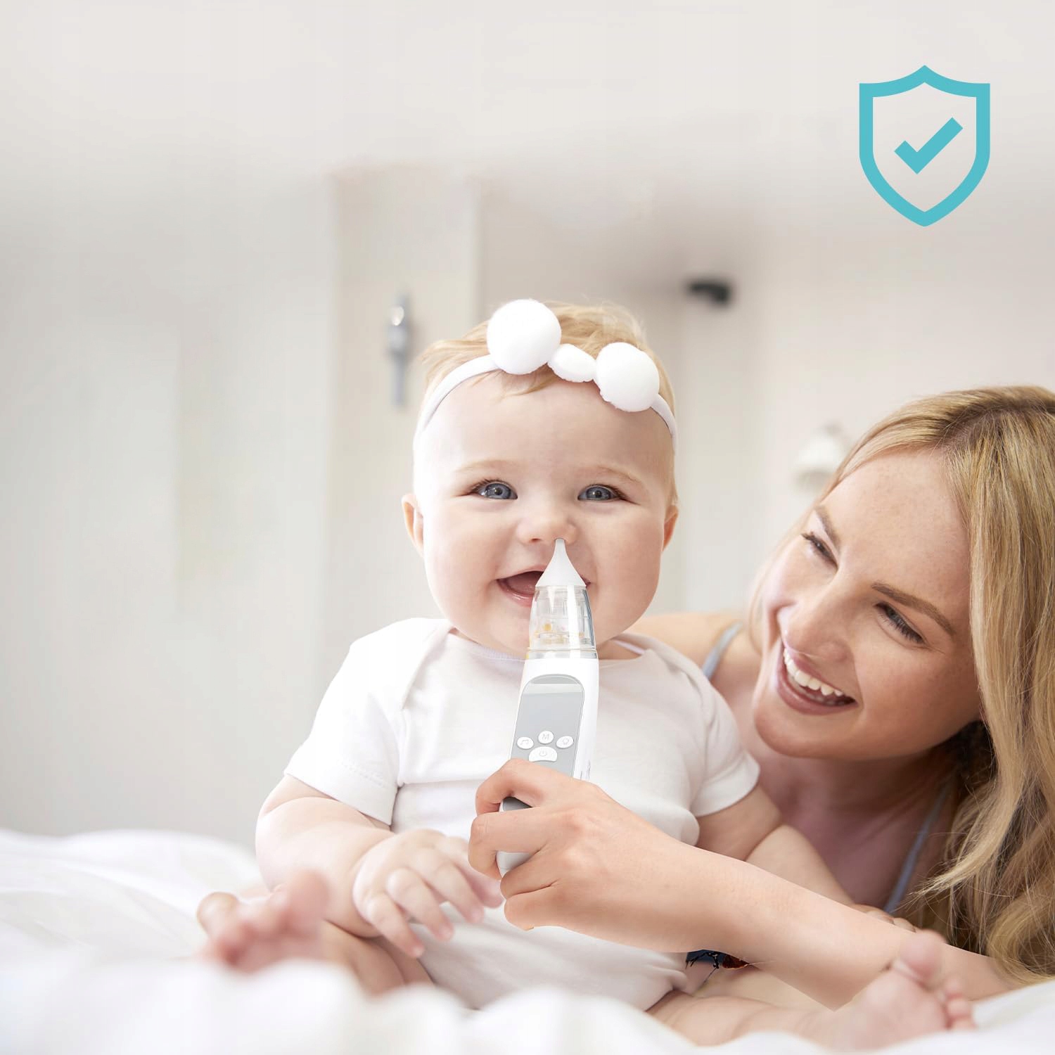 - Наш електричний назальний аспіратор має три регульовані рівні всмоктування, що дозволяє легко видаляти як густі, так і рідкі виділення.
