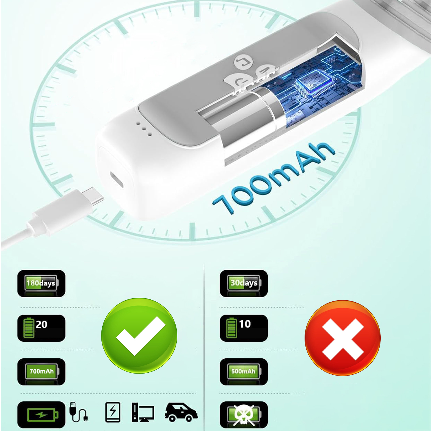 - У нашому назальному аспіраторі використовується нова технологія батареї, яка забезпечує до 2,3 годин безперервної роботи на одному заряді та до 180 днів у режимі очікування.