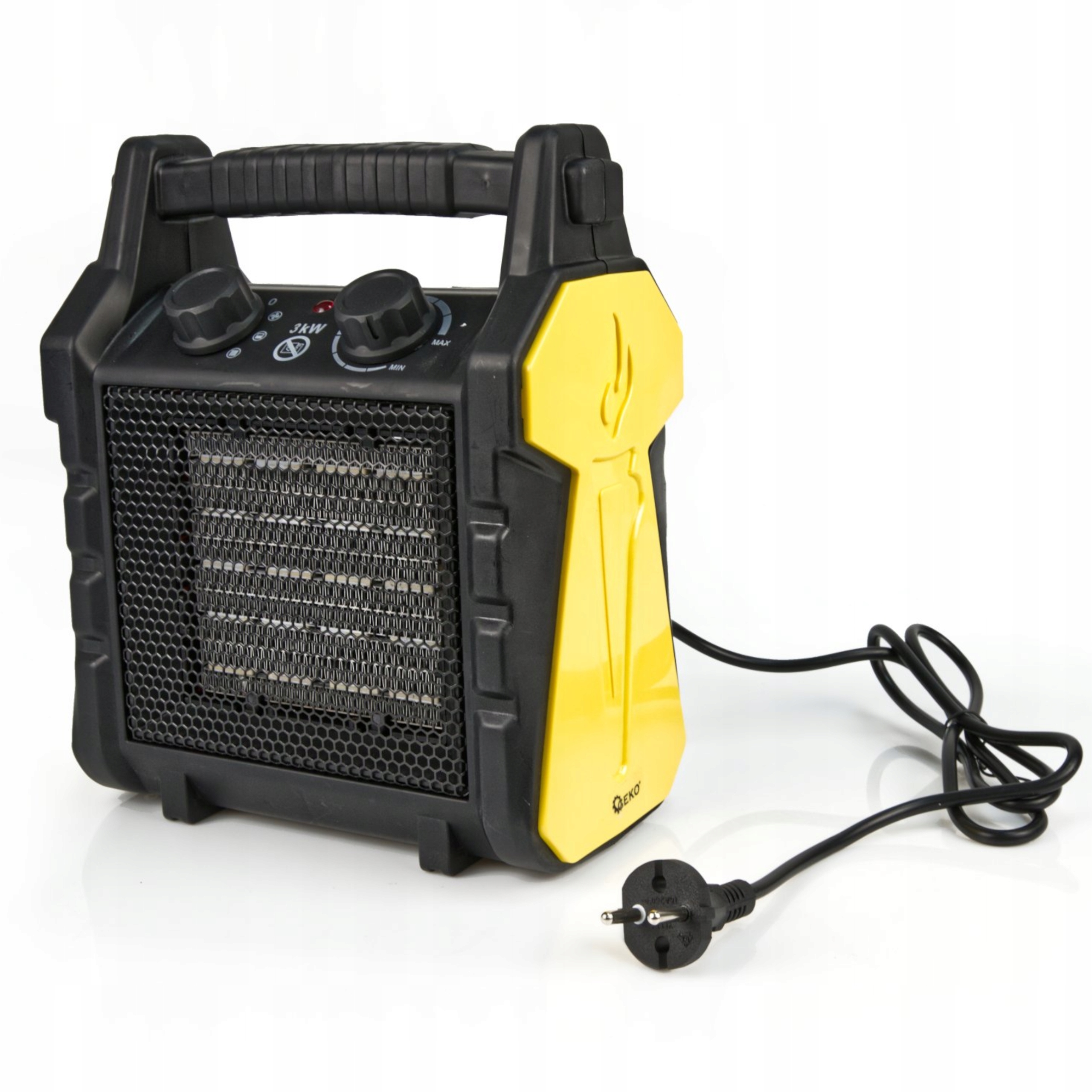 з потужністю 3kw . Він оснащений керамічним нагрівальним елементом , який у поєднанні з сильним потоком повітря забезпечує швидке нагрівання приміщень, таких як магазини, майстерні, гаражі, домогосподарства тощо. Він має два перемикачі, які дозволяють встановити потужність нагрівача та встановити бажану температуру після того, як температура навколишнього середовища падає, коли навколишні температури нижче температури. Ізольована ручка дозволяє безпечно переносити обігрівачі навіть після вимкнення.