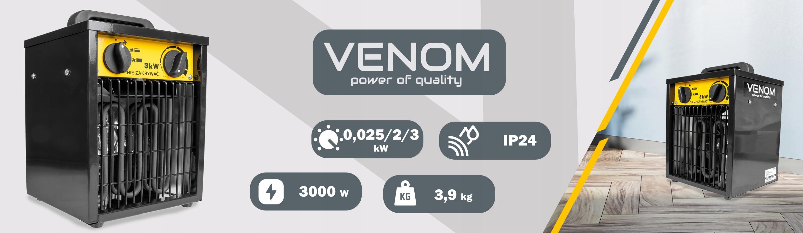 Ви можете запустити VENOM VN 30H за кілька секунд - просто підключіть його до джерела живлення та увімкніть пристрій. Обігрівач не вимагає складної експлуатації або додаткових підготовчих робіт. Міцна конструкція, якісні обігрівачі та надійний вентилятор гарантують довгі роки безвідмовної роботи. Завдяки цьому ви можете бути впевнені, що обігрівач буде працювати в будь-яких умовах і багато сезонів.