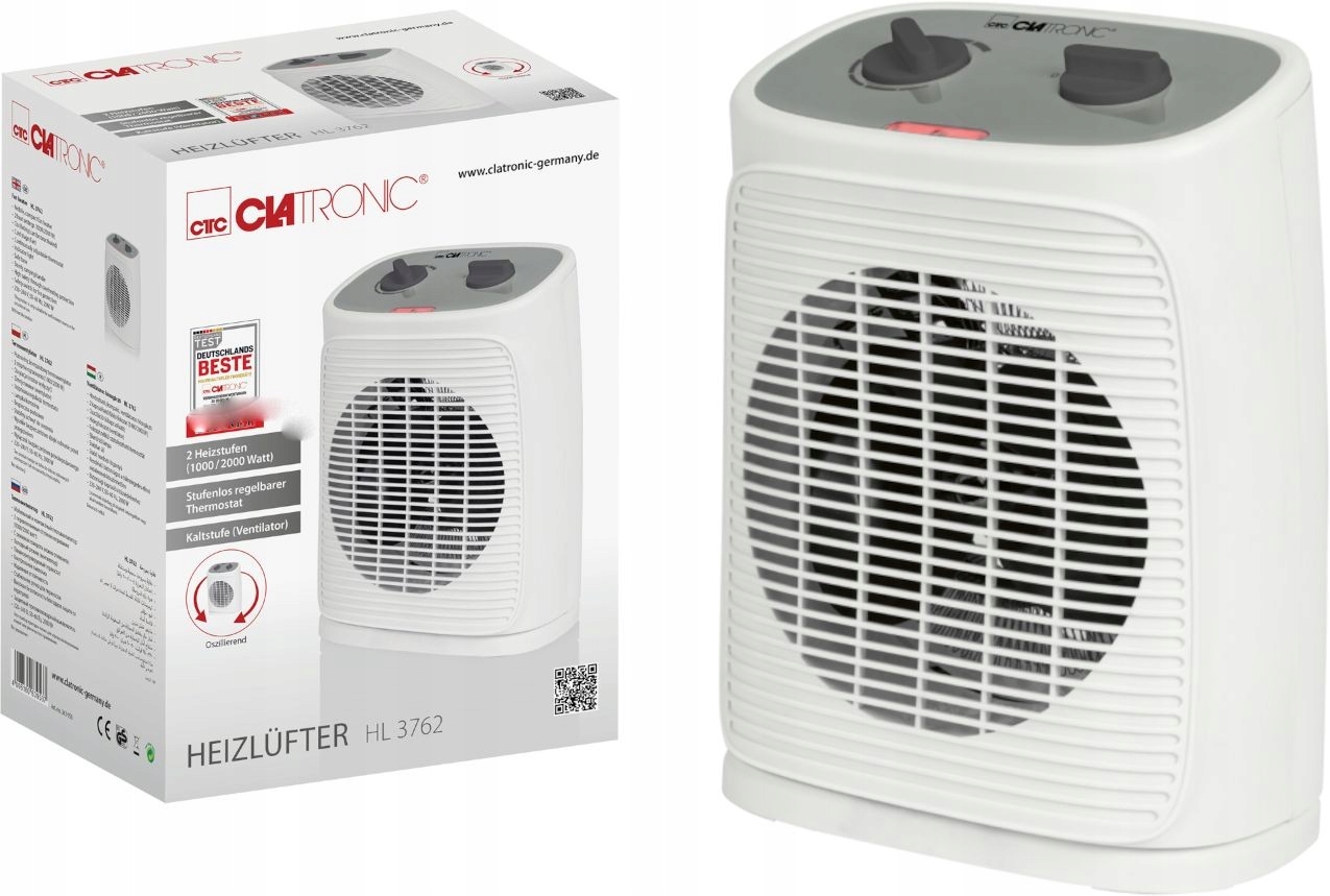 Clatronic HL це компактний тепловентилятор з функцією коливання, який перетворить холодні дні на приємно теплі. Невеликий прилад з максимальною потужністю 2000 Вт швидко і ефективно обігріє ванну, дитячу кімнату або офіс. Завдяки невеликим розмірам і зручній ручці його можна брати з собою в фургон, на ділянку і в гараж.