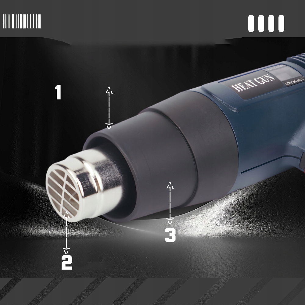 пістолет з гарячим повітрям пропонує різні налаштування температури. Використовує два кабелі високої температури для швидшого збору тепла та нагрівання. Оснащений захистом від перевантаження контролю температури, має тривалий термін експлуатації.