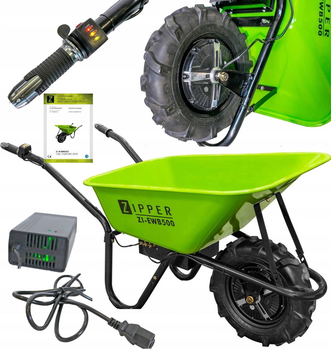 - Суцільна тачка з електричним приводом для транспортування товарів навіть у складному саду, навколо будинку або на будівельному майданчику чи фермі.