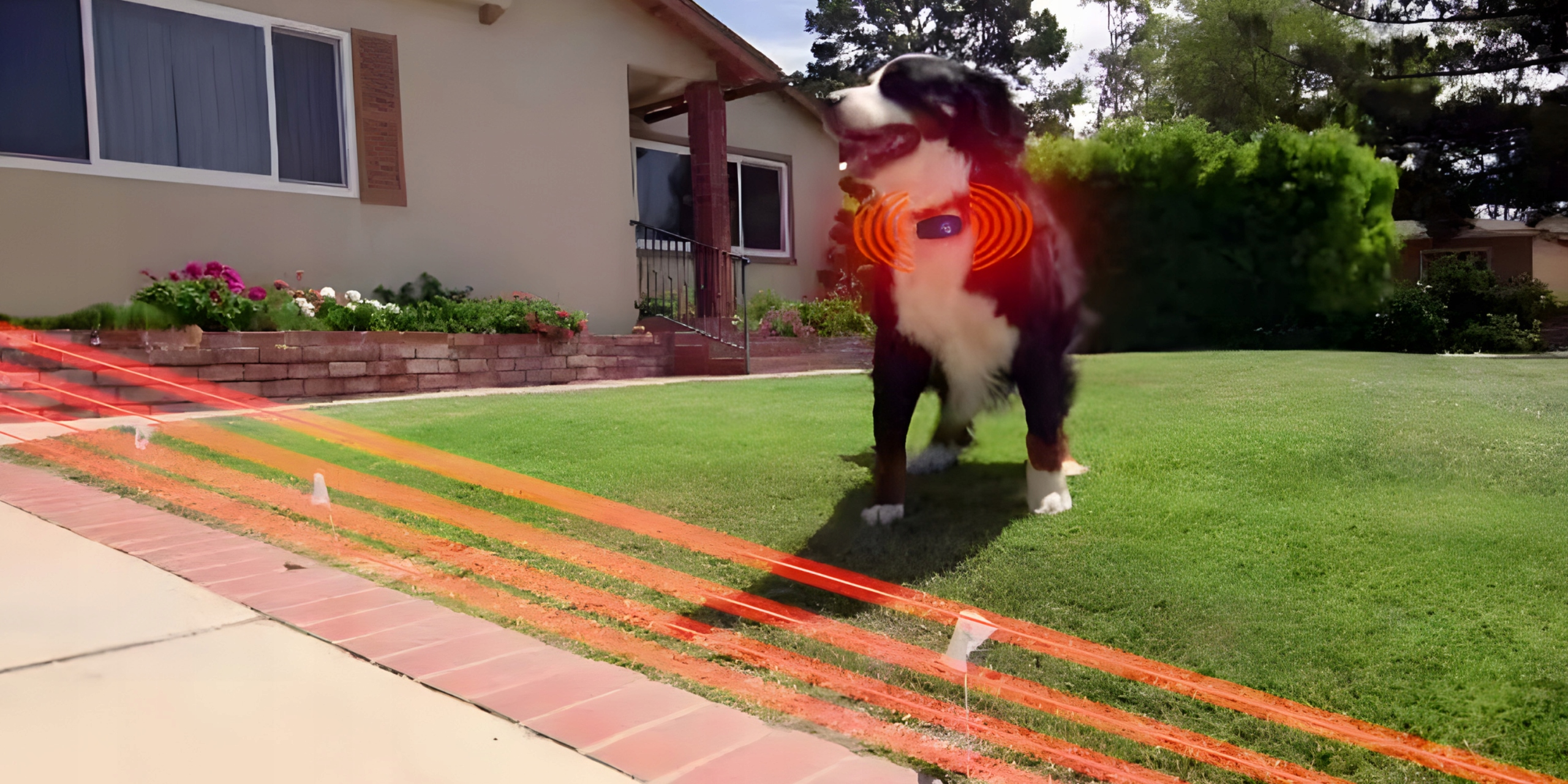 Межі огорожі позначені дротом, який можна неглибоко закопати в землю або покласти на землю. Кабель підключається до блоку керування, який діє як антена. Блок управління зв'язується з нашийником, який носить собака.