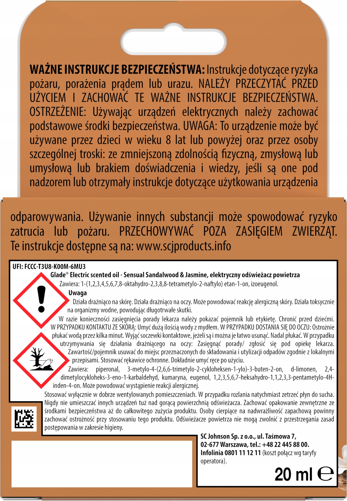 ЕЛЕКТРИЧНИЙ ОСВІЖУВАЧ ПОВІТРЯ GLADE + САНДАЛ ДЕРЕВО ЖАСМИН 20 МЛ