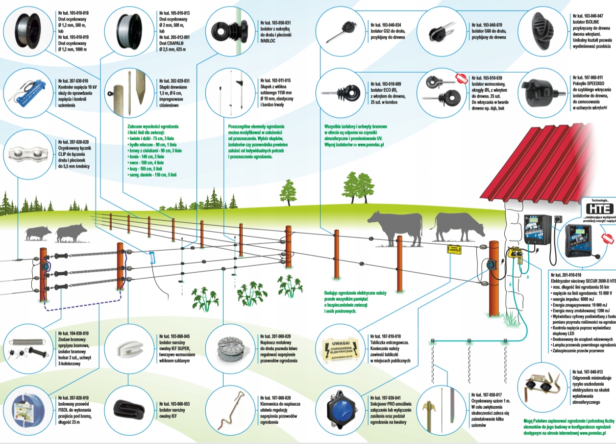 - максимальна довжина лінії електричного паркану: при живленні від джерела живлення: 12000 м
