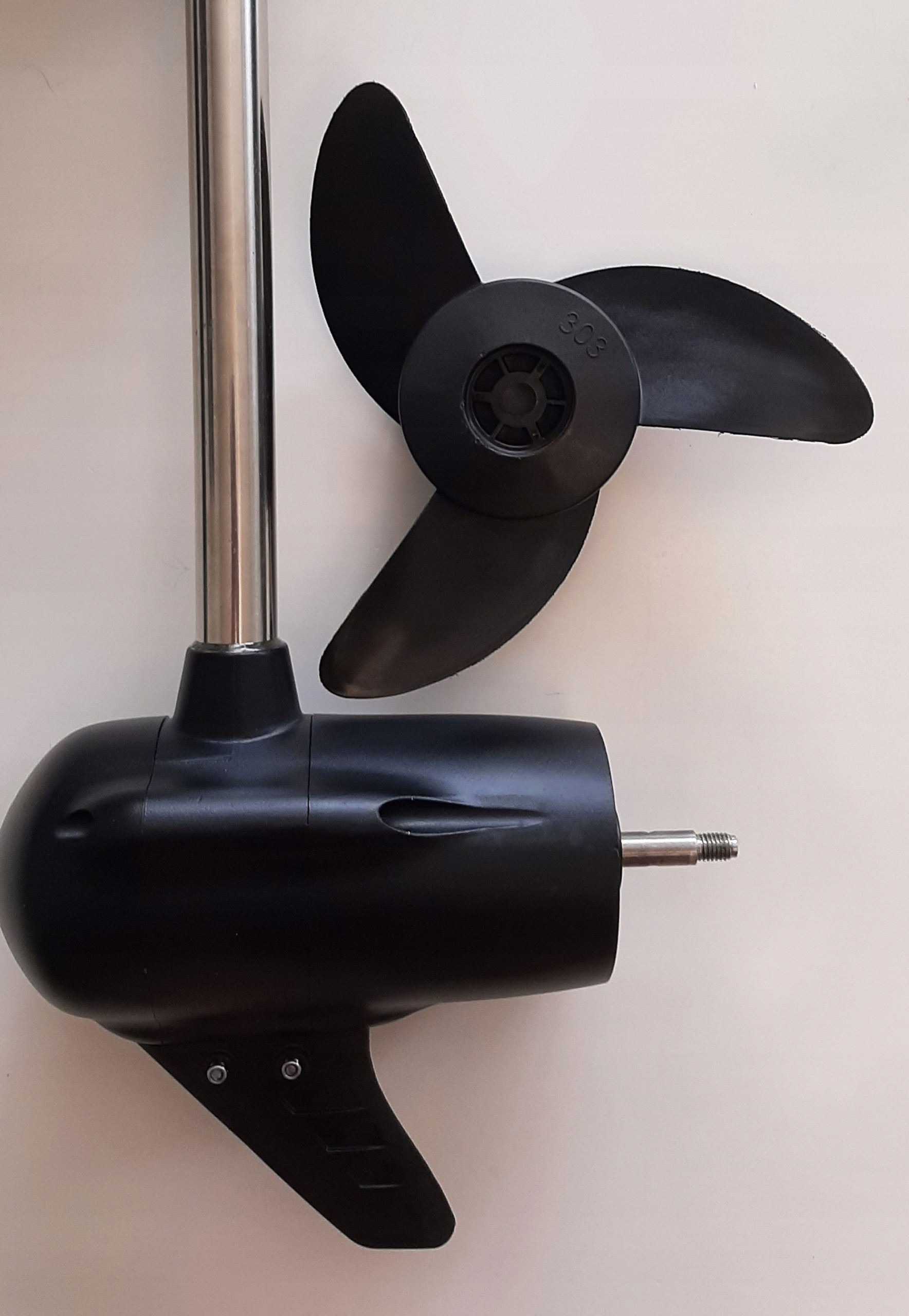 - У двигуні використовується електронна система захисту. Якщо гвинт зупиняється, наприклад, натикаючись на підводну перешкоду, намотуючи велику кількість волосіні, рослинності тощо, двигун вимкнеться. Коли двигун виявляє занадто низьку напругу, він переходить в режим захисту, щоб не пошкодити акумулятор.