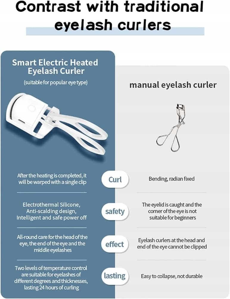 【електричний обігрівений бігуді для вій】: необхідний у вашому косметичному наборі! Якщо у вас є достатньо несправних течій або важкої туші, які не дають бажаного залицяння, електричний обігріваний бігуді - це безпечне та зручне рішення, яке дозволить вам збільшити вії! Природно товстіший зовнішній вигляд, який приверне увагу завдяки ергономічному дизайну та найсучаснішій функції опалення. 4