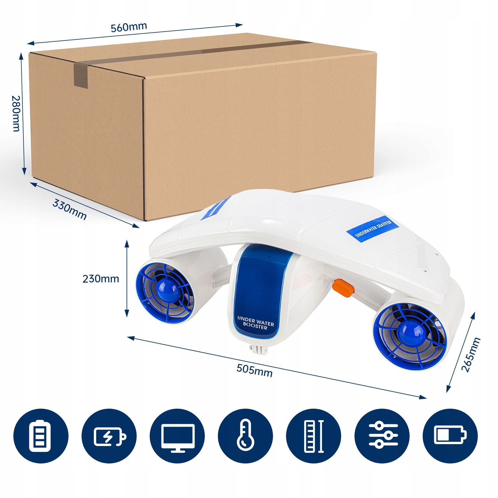 Цей електричний підводний скутер призначений для сноркелінгу, дайвінгу та пригод біля басейну. Світло, але сильний, допомагає рухатися під водою без зусиль, незалежно від того, чи є ви початківцем чи досвідченим водолазом. Завдяки акумулятору з потужністю 7500 мАг, подвійним регулюванням швидкості та глибиною 20 м, він забезпечує як веселу, так і безпеку для всієї родини.