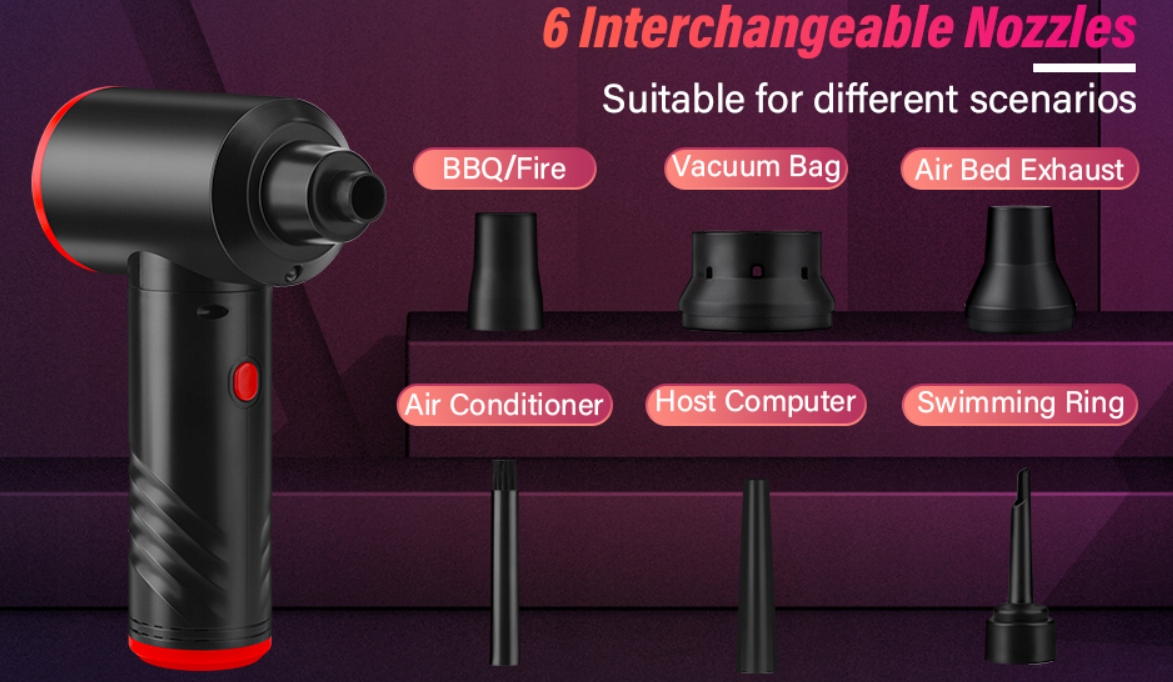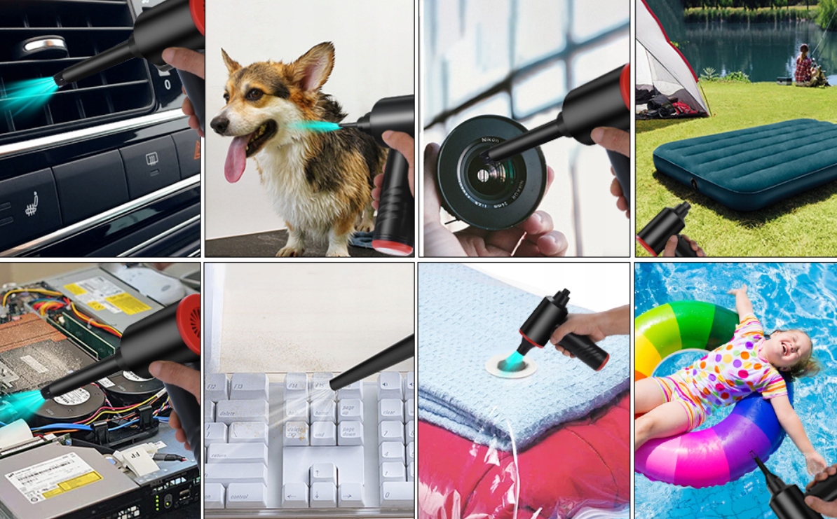 Просунута інструмент для очищення обладнання Ми представляємо Будци Електричний пиловий повітрод Оснащений міцним акумулятором 6000 мАг, швидкою зарядкою USB-C та світлодіодним освітленням, цей пристрій є ідеальною заміною для банок із стисненим повітрям.