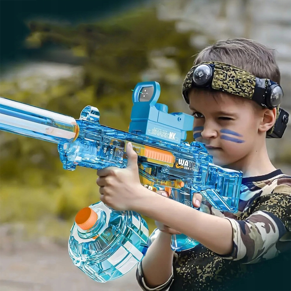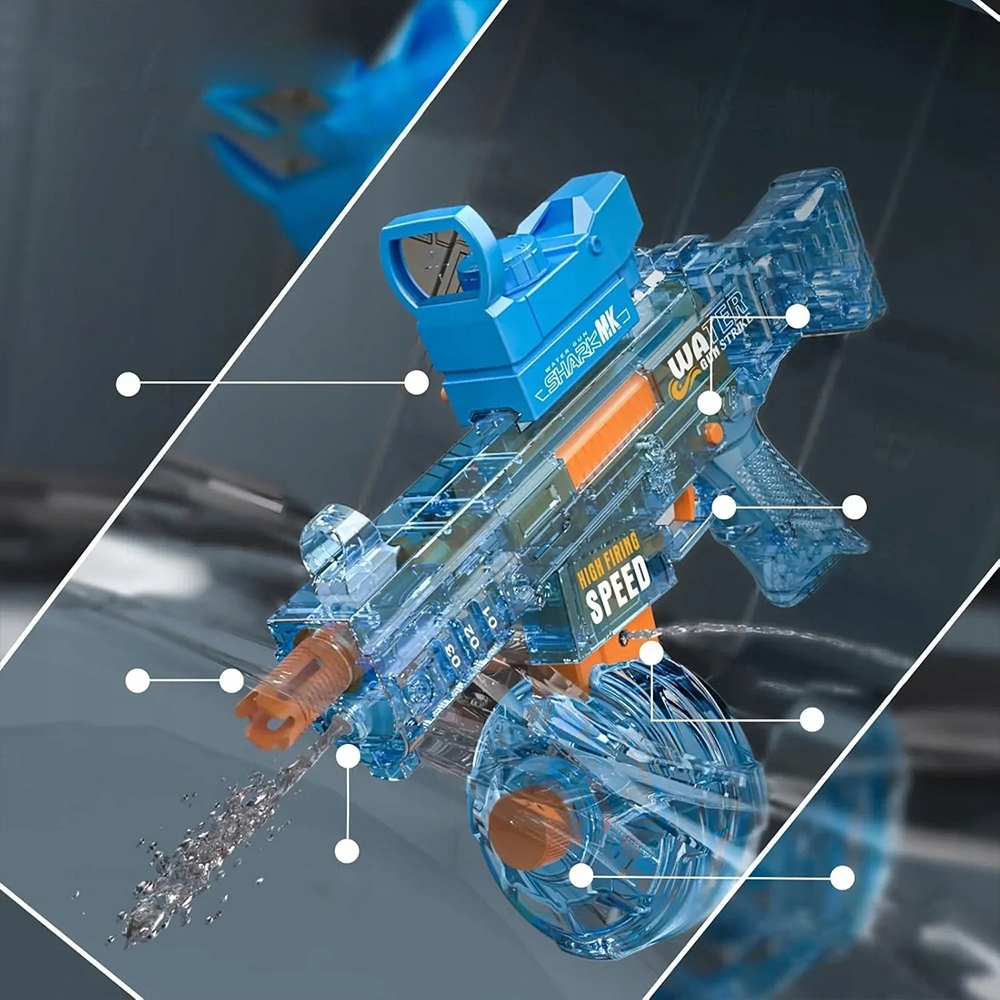 Наш водяний пістолет приймає автоматичний режим з'єднання, а це означає, що люди роблять його залежним від нього. Ми також використовуємо напівпрозорий зовнішній дизайн, що забезпечує незрозуміле бачення внутрішніх справ тіла пістолета. Структура виглядає дуже технологічно, збільшуючи уяву дітей та нескінченне задоволення.