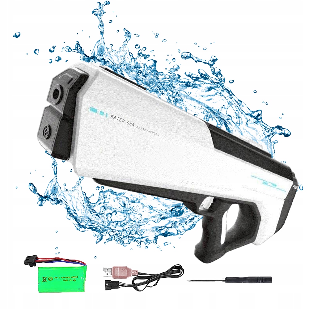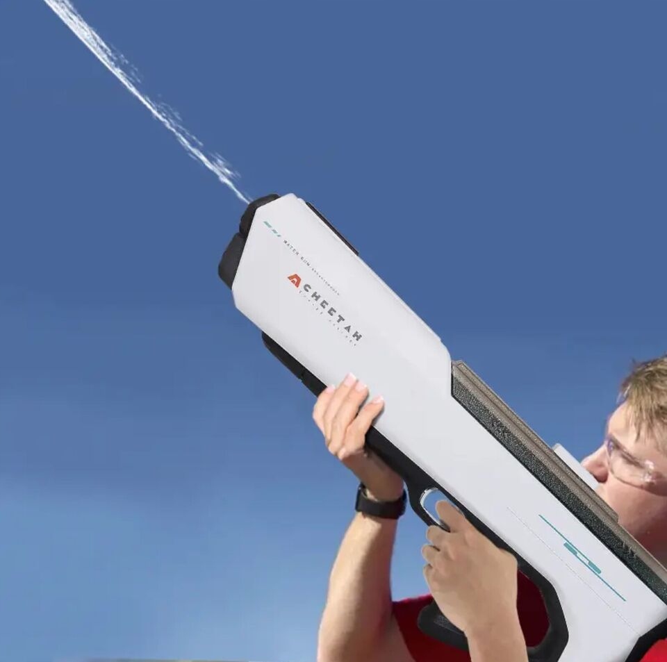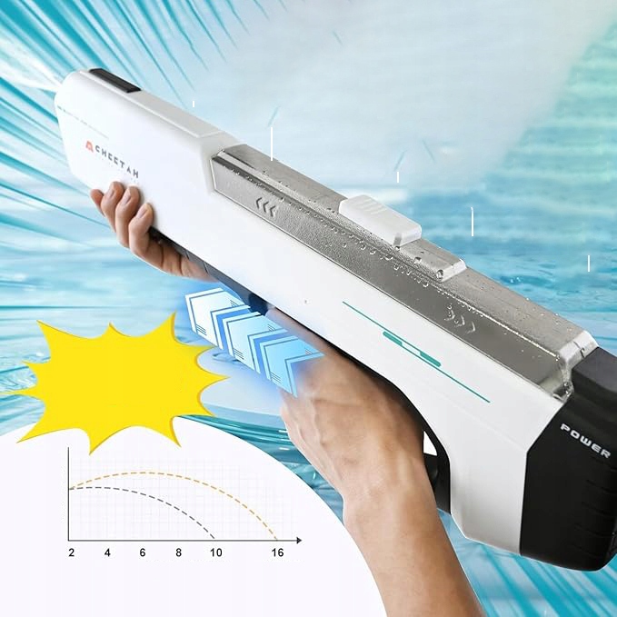 - Цей водний пістолет живиться акумулятором і стріляє безперервно після одного пресу тригера, що дозволяє заощадити енергію під час гри. Підходить для дітей та дорослих у віці 7-10 років і є ідеальною іграшкою для літнього саду, басейну та пляжу.