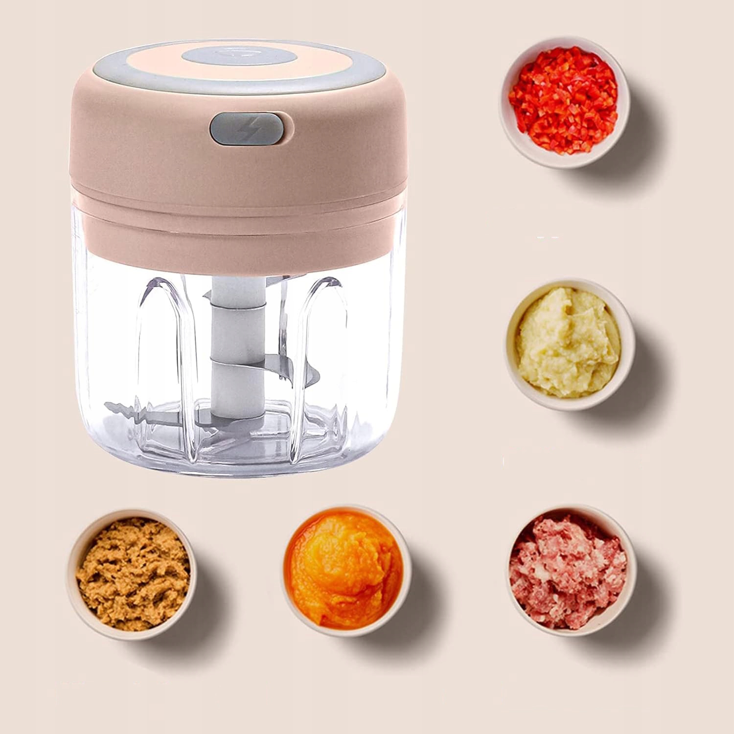 Електричний подрібнювач міні -овочевий подрібнювач 250 мл+100 мл, рожевий