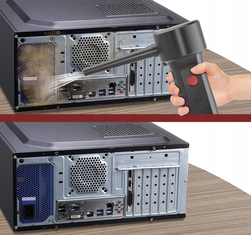 Компресор має потужність до 100 Вт, що дозволить видувати бруд із важкодоступних куточків вашого комп’ютера, віконної рами, автомобіля чи інших куточків вашого дому.