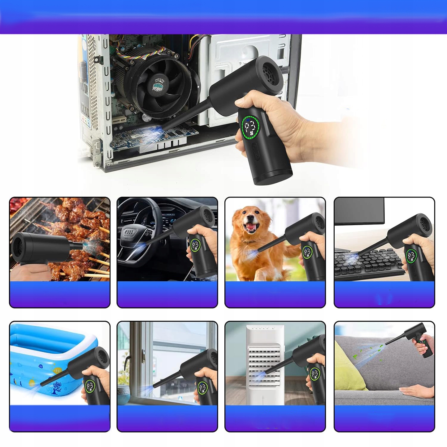 1) Завдяки технології двигуна з великою потужністю електрична повітряна пияка має максимальну швидкість 110 000 об/хв для очищення кожного кута. Загалом доступні 3 швидкості вітру.