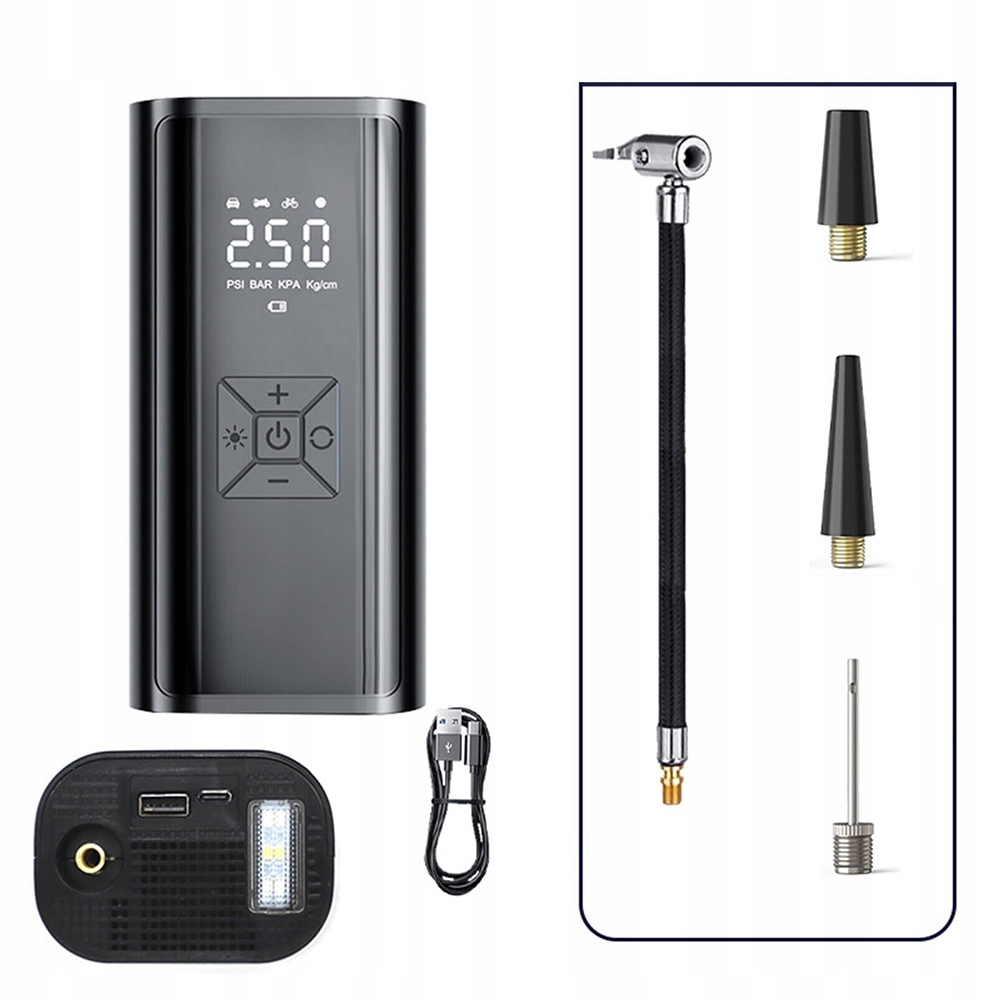 - 【3 одиниці тиску повітря та 4 режими використання】Цей електричний повітряний насос підтримує 3 одиниці напруги (бар, кПа) і чотири режими роботи, підтримує надування. м’ячі, велосипедні, мотоциклетні та автомобільні шини.