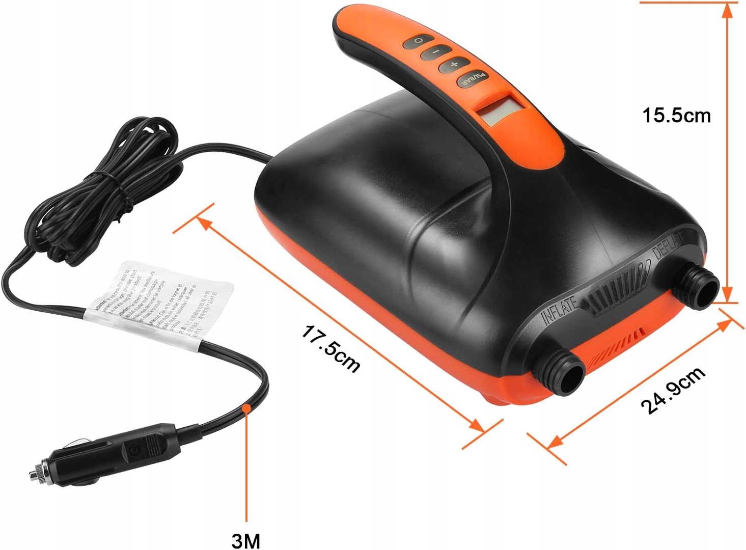 Специфікація: Матеріал: ABS + PA Розмір: 15 * 25 * 17 см вага: 1,7 кг. Довжина повітряного шланга: 3,6 футів регульований тиск повітря: 0-20 фунт / кв. Дюйм (до 1,378 бар) упаковка: 1 х цифровий електричний повітряний насос. 1 x Повітряний шланг.