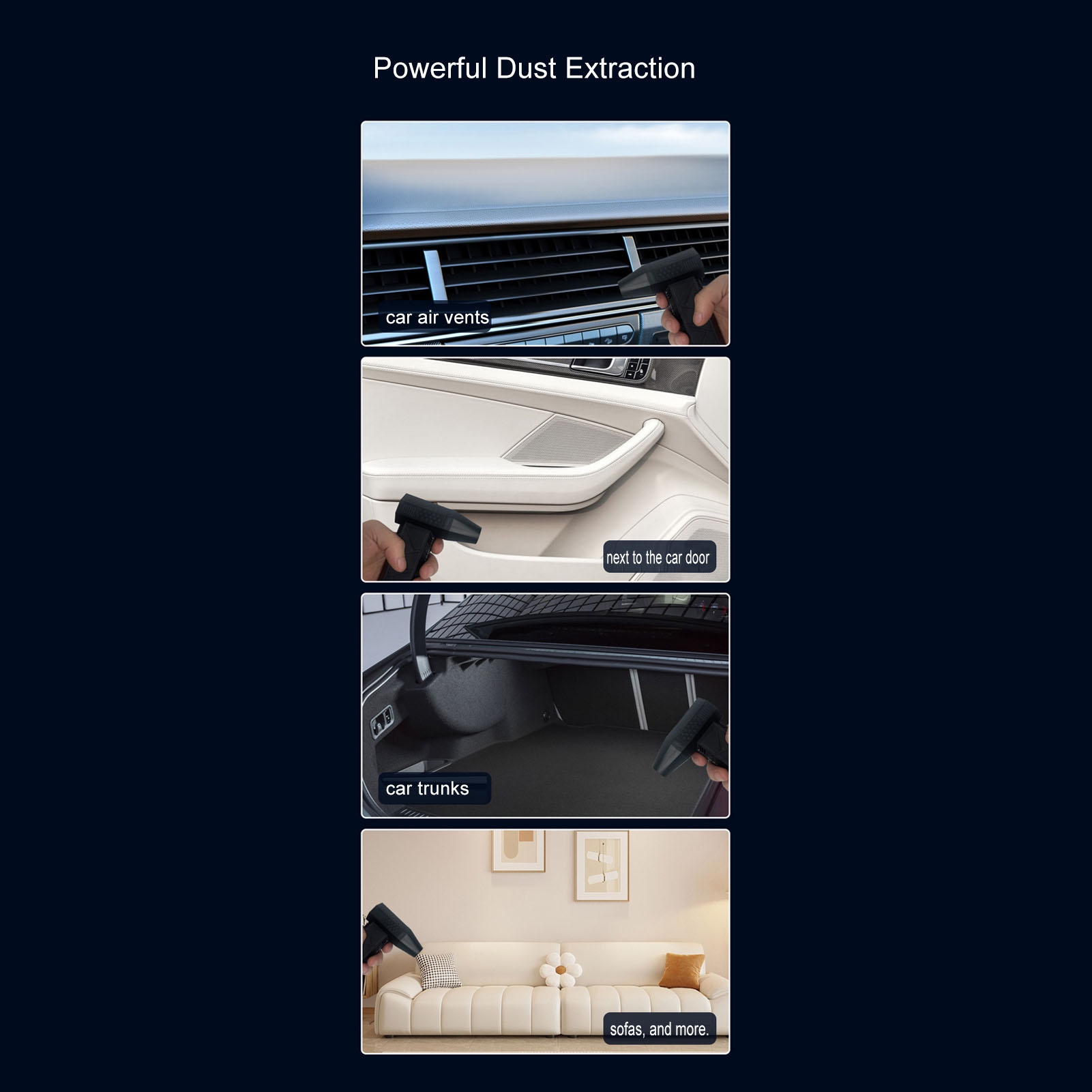 1. Потужність: повітряний пиловловлювач має двигун із максимальною швидкістю 130 000 об/хв і тиском вітру 180 грамів, що забезпечує високу ефективність із максимальною швидкістю вітру понад 52 м/с (супертайфун ≥ 51,0 м/с). Легко видаляє пил з різних щілин клавіатури або будь-яких електронних пристроїв, надзвичайно зручний для використання вдома, в офісі чи автомобілі пилосос.