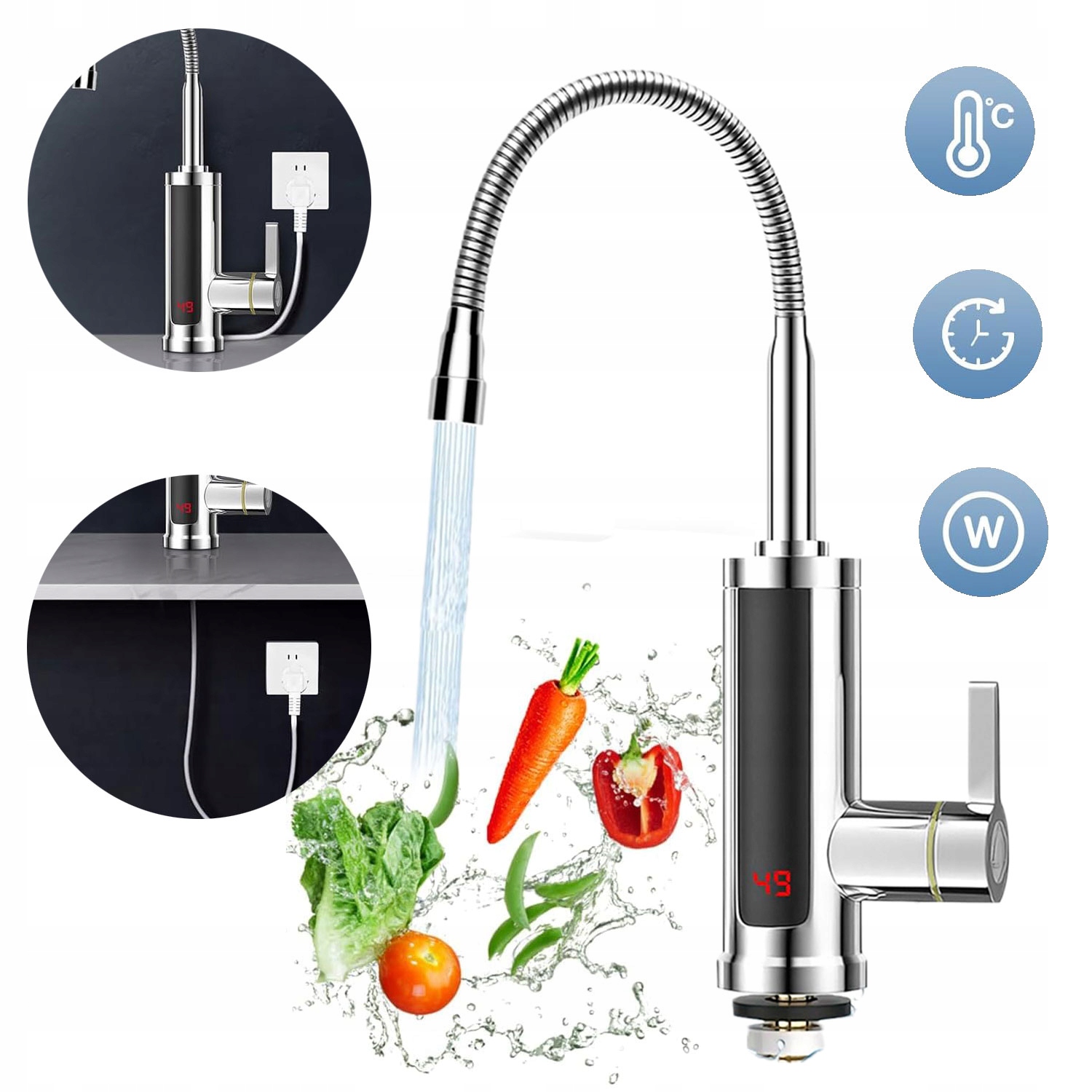 ЕЛЕКТРИЧНИЙ ПРОТОЧНИЙ ВОДОНАГРІВАЧ LCD СТІЛЬНИЦЯ КУХОННА БАТАРЕЯ 3000W