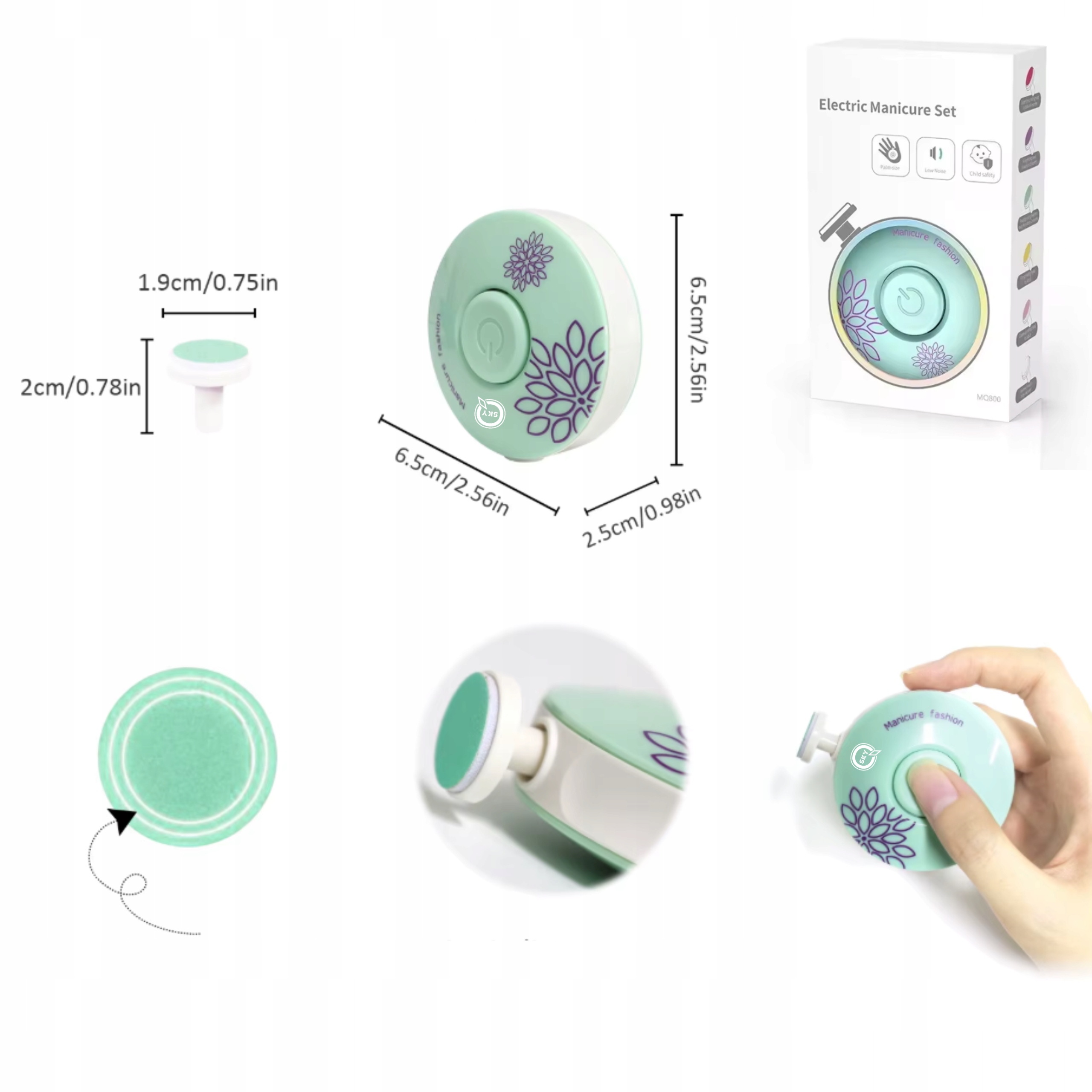 2️⃣ Має змінні шліфувальні головки - для різного віку