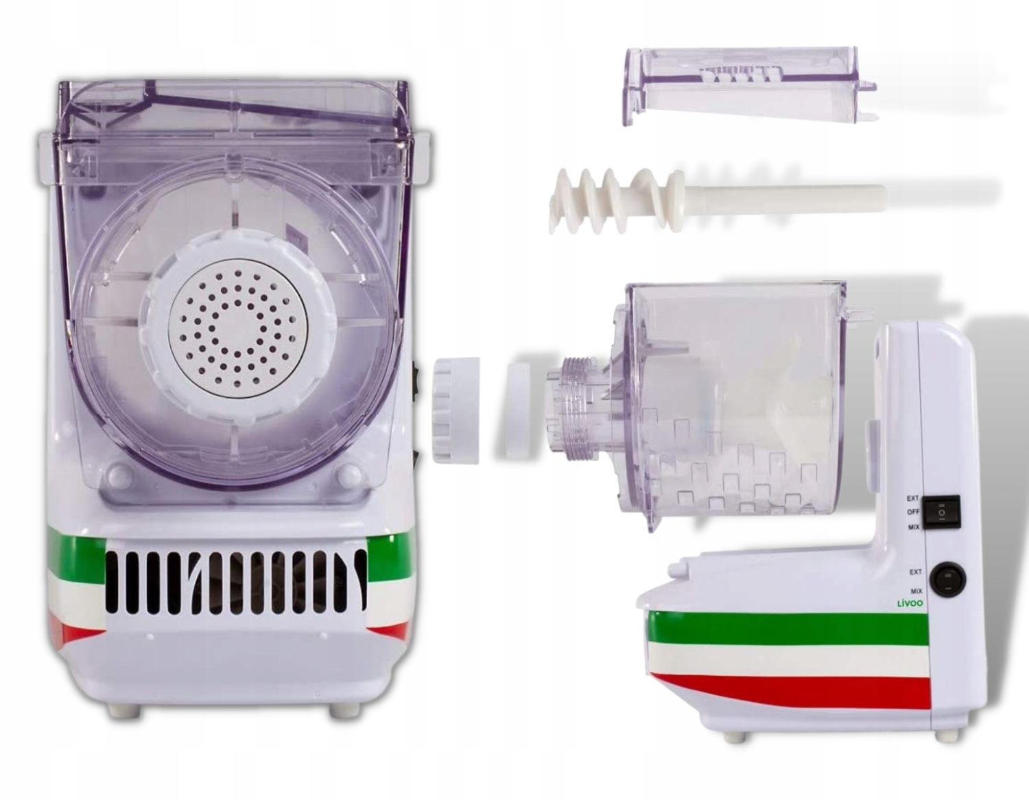 - Особливості: Пристрій електрична макаронна машина Livoo DOP101 Використовуйте пристрій для приготування смачної пасти Увага любителі пасти! Макаронна машина дозволить приготувати свіжу пасту всього за 20 хвилин, і все це без будь-яких зусиль. Спагетті, ригатоні, лазанья, тортелліні тощо. Ви зможете приготувати 10 різних форм пасти. Машина великої місткості Завдяки великій ємності 400 грамів борошна прозора чаша також дозволить вам контролювати консистенцію тіста та, якщо необхідно, додавати воду або борошно, щоб отримати тісто, яке не буде ні надто сухим, ні надто вологим . Потужність 180 Вт дозволяє ефективно змішувати, місити і робити пасту. Це дозволяє створювати власні рецепти або пробувати нові. Ви можете самостійно приготувати макарони з білого борошна, цільнозернового борошна або борошна з твердих сортів пшениці за власними рецептами. Ви навіть можете персоналізувати свою пасту, додавши оливки, помідори чи шпинат, щоб додати смаку.