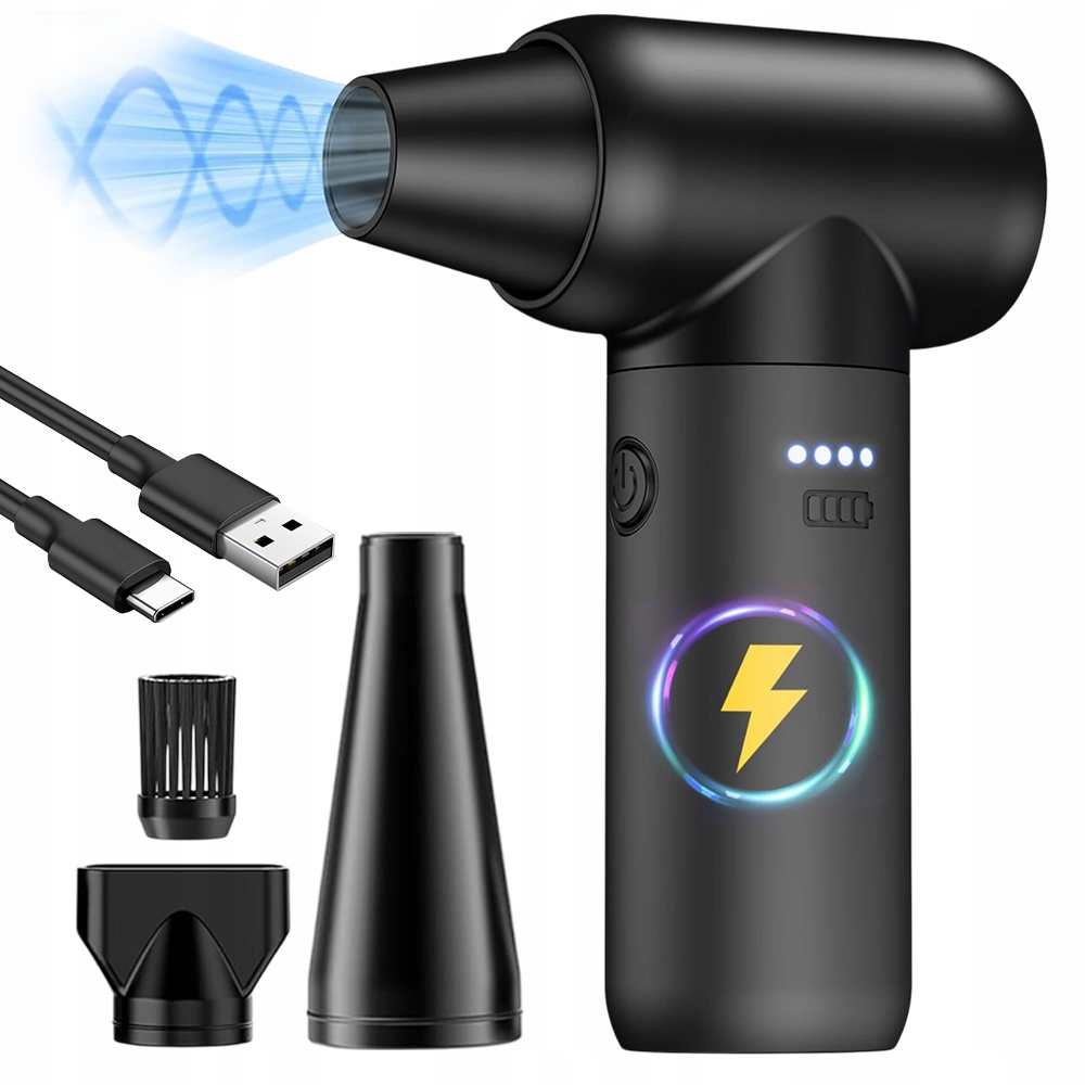Цей стислий анти -субресивний повітряний тканина оснащена швидким безглуздим двигуном з максимальною швидкістю 180 000 об/хв, що може забезпечити максимальну швидкість до 50 м/с і силу вітру до 5 унцій. Завдяки високій ефективності, електрична пилочка може легко впоратися з поверхневим пилом, дощем та снігом. Стандартний елемент обладнання для повітродувки - це коротка насадка, яку можна легко витягнути та замінити на іншу. З низькою швидкістю встановлення 20 000 об / хв. Термін служби акумулятора - 90 хвилин. Середня швидкість встановлення 100 000 об / хв. Забезпечує 70 хвилин акумулятора, тоді як високошвидкісне налаштування - 180 000 об / хв. забезпечує 50 хвилин роботи. Прикріплений кабель для зарядки типу швидкого типу C дозволяє повністю зарядити пристрій всього за 3 години. Підходить для втирання пилу з комп’ютерів та клавіатур, освітлення багаття та виготовлення бульбашок з листя зовні, висушування волосся домашніх тварин та людей, зняття пилу з внутрішньої частини автомобілів, вилучення снігу з автомобілів та видалення пилу. Дощова вода з дзеркал автомобіля, пневматичні матраци, надувні кулі, охолоджуючі вентилятори тощо.