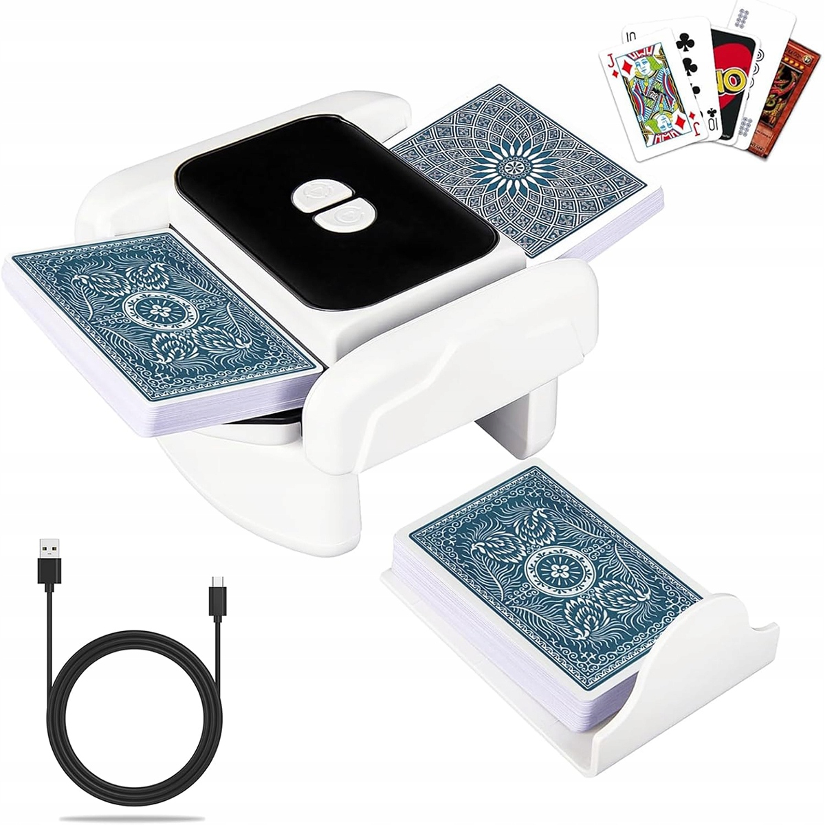⭐⭐⭐Шафлер карт Електричний тасувач карт на 1-2 колоди Одне натискання, автоматичний і ручний, перезаряджається, 2000 мАг, безшумний, для покеру, UNO, Blackjack, Skip-BO, фаза 10, Texas Hold'em⭐⭐⭐