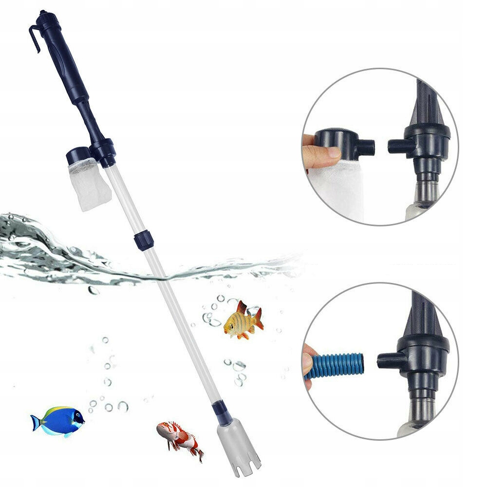 ✅Універсальний дизайн:Гравійний пилосос можна живити від батареї та використовувати безпосередньо через адаптер. Вільно регульована довжина: 56/67/82 см, підходить для великих і малих акваріумів.