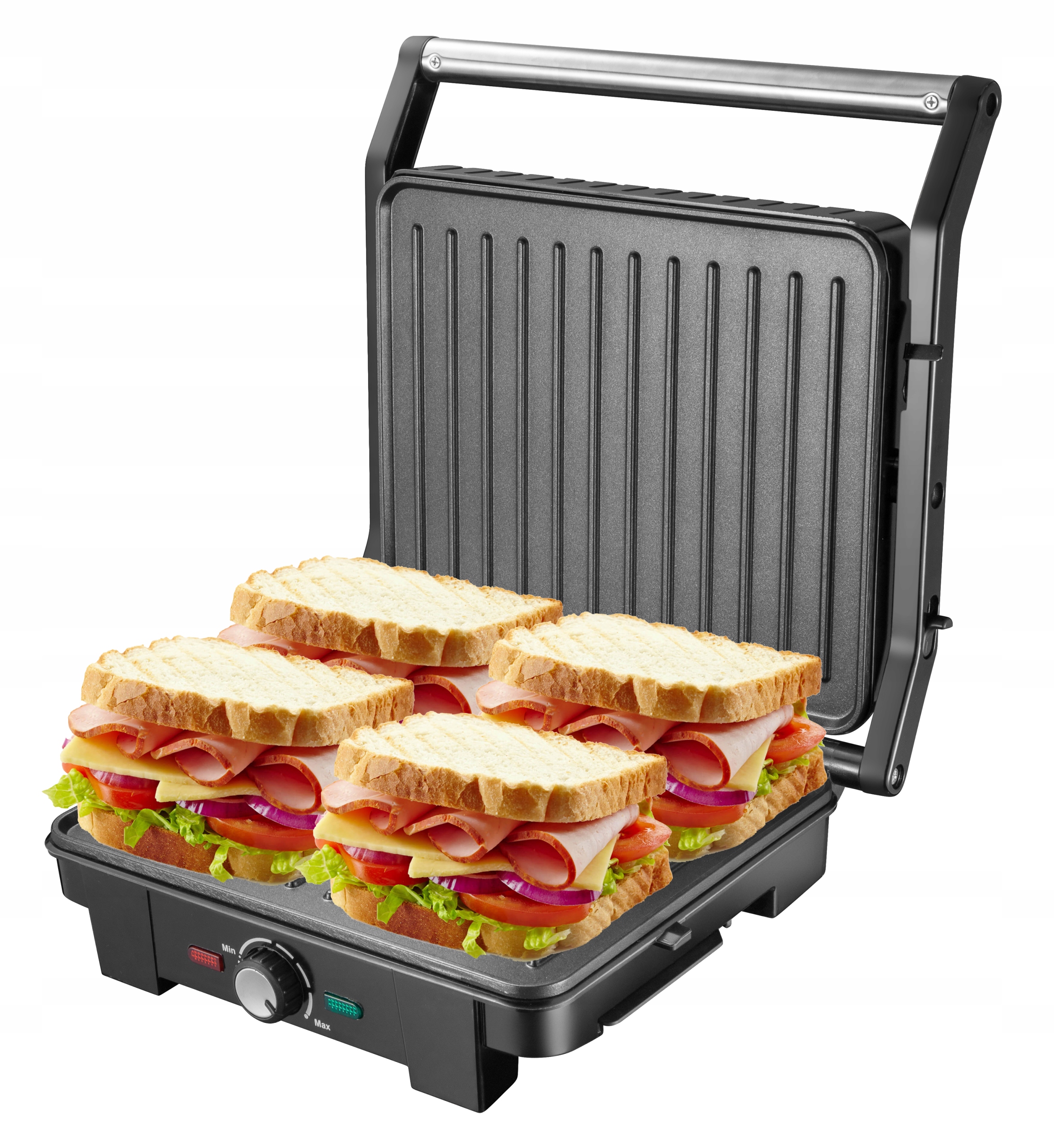Мабуть, у кожного з нас є своя улюблена страва-гриль. Незалежно від того, м'ясо це, сир, овочі чи солодкі закуски, починаючи з сьогоднішнього дня ви можете приготувати їх здорову версію на власній кухні. Наш електричний гриль - це дуже простий у використанні прилад, виготовлений з високоякісних деталей завдяки якому ви за кілька хвилин приготуєте ароматний обід, закуску або гарячу вечерю для себе , друзям або всій родині. Максимальна потужність 2200 Вт дозволяє швидко приготувати на грилі навіть більший шматок м'яса або твердих овочів. Термостат постійно підтримує належну температуру нагрівальних плит, а світлодіодна лампочка, розміщена у верхній частині кришки, повідомляє про готовність гриля до роботи. Це простий і функціональний пристрій, який можна зберігати вертикально, тому він не займе багато місця навіть на найменшій кухні.