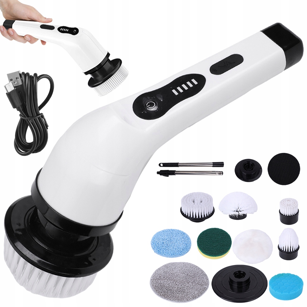 Електричний скруббер 9 в 1 зі змінними наконечниками, USB-C, потужність 25 Вт - білий