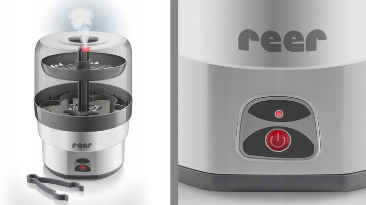 Новонароджені, немовлята та маленькі діти не мають достатньо антитіл на початку свого життя, щоб захистити себе від інфекцій. VapoMax Reer стерилізує до 6 флаконів лише за 10 хвилин. Потім випарник автоматично вимикається. Прорізувачі, пустушки, соски та інші дрібні деталі можна зберігати у великому знімному вкладиші кошика. VapoMax підходить як для скляних, так і для пластикових пляшок.